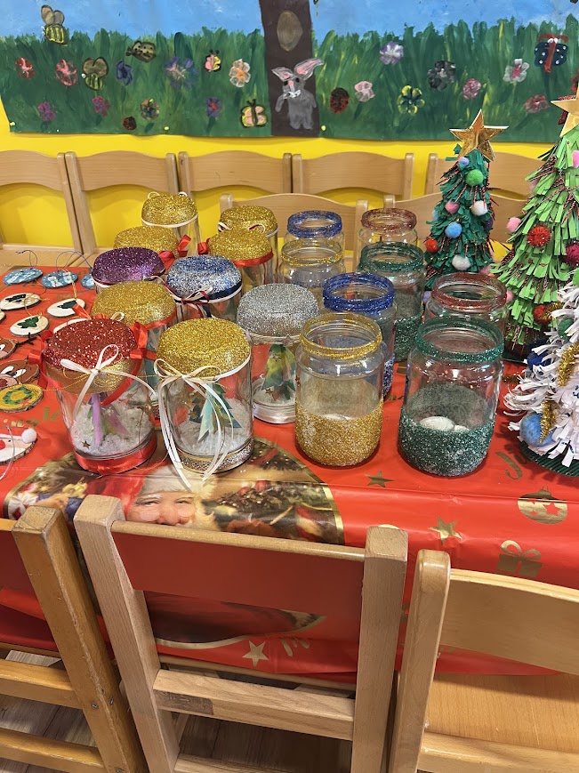 Τα παιδιά μας με τη βοήθεια και την καθοδήγηση των εκπαιδευτικών της κάθε τάξης δημιούργησαν υπέροχες χειροποίητες κατασκευές, χρησιμοποιώντας φυσικά υλικά, χρώματα, χαρτόνια, ανακυκλώσιμα στοιχεία και άφθονη χριστουγεννιάτικη διάθεση. Κάθε δημιουργία είναι μοναδική, φτιαγμένη με αγάπη και χαρά στο πλαίσιο των δραστηριοτήτων της τάξης.