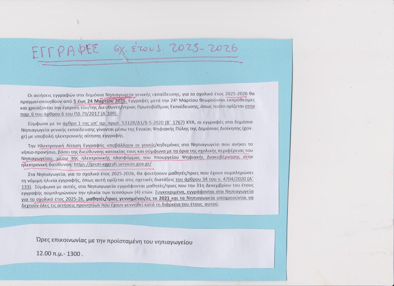 Εγγραφές μαθητών τριών στα Νηπιαγωγεία για το σχολικό έτος 2021-2022 – Έκδοση 1