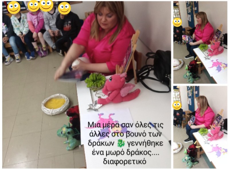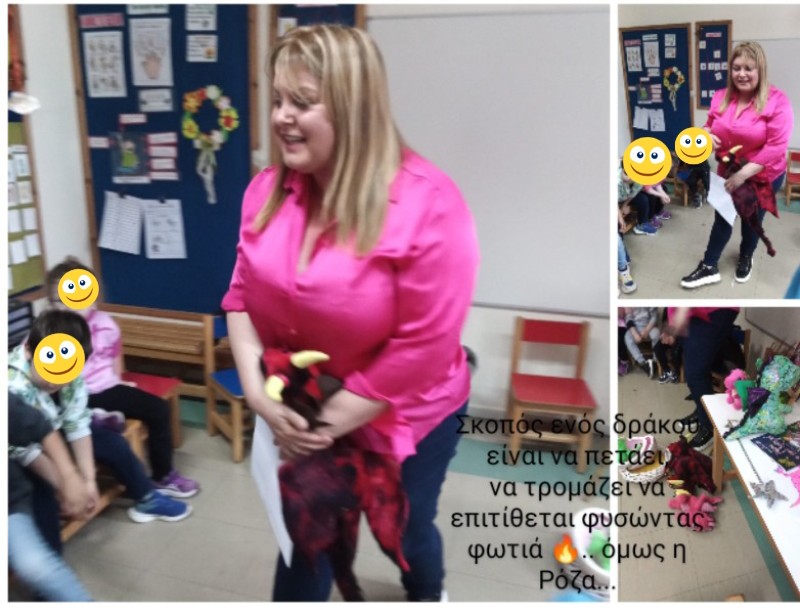 Σήμερα είχαμε την τιμή και τη χαρά να υποδεχτούμε στο Νηπιαγωγείο μας την Συγγραφέα κ. Μαρία Καλτσή, η οποία μας αφηγήθηκε τη ιστορία : ” Ρόζα , ο ροζ δράκος”