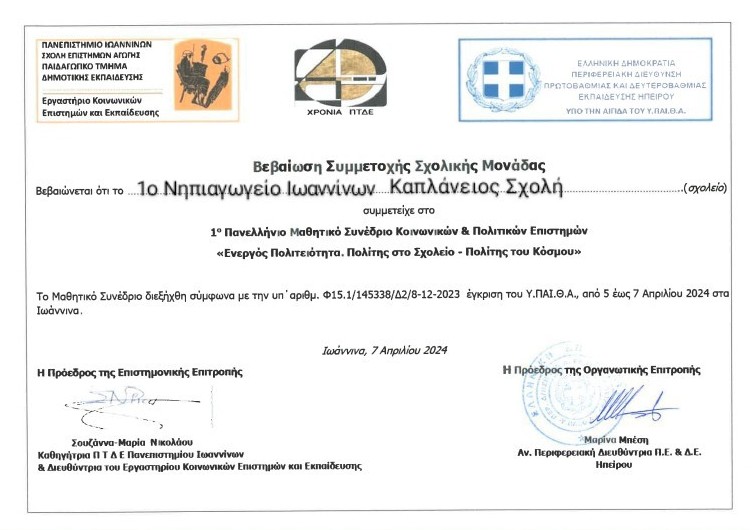 Το σχολείο μας 1o ΝΗΠΙΑΓΩΓΕΙΟ ΙΩΑΝΝΙΝΩΝ ΚΑΠΛΑΝΕΙΟΣ ΣΧΟΛΗ