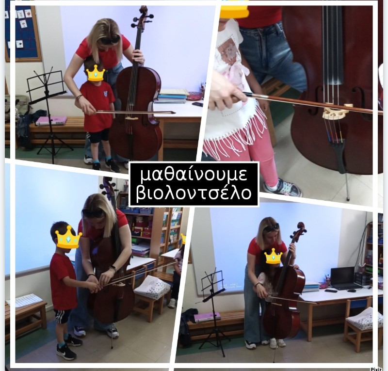 Με αφορμή την επίσκεψη των φοιτητριών από το Παιδαγωγικό τμήμα Νηπιαγωγών του Πανεπιστημίου Ιωαννίνων του 3ου έτους μιλήσαμε για τη μουσική ….μάθαμε βιολοντσέλο ,είπαμε παραμύθια και φτιάξαμε μαράκες.