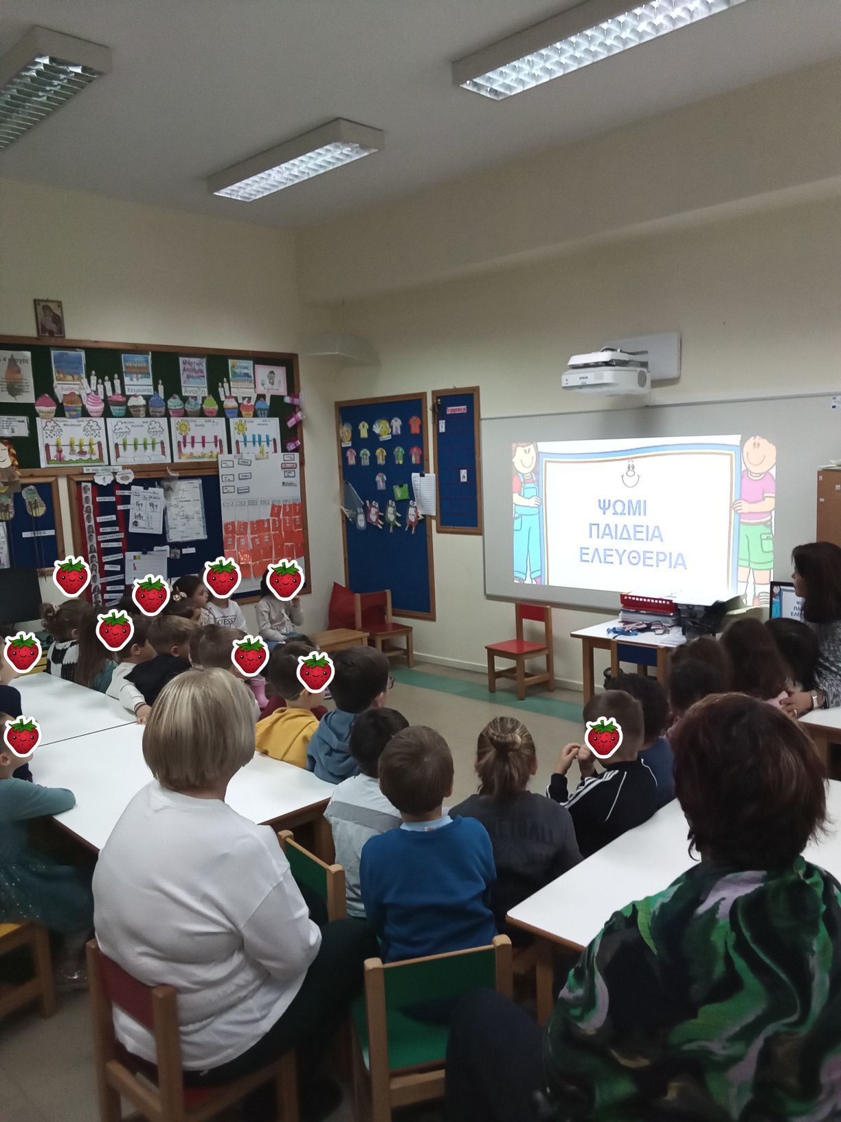 Στα πλαίσια λοιπόν του εορτασμού είχαμε τη χαρά να υποδεχτούμε στο σχολείο μας δύο κυρίες από τα Παιδικά Χωριά SOS , οι οποίες μας προσέφεραν μια ξεχωριστή εμπειρία. Μέσα από την αφήγηση ενός παραμυθιού, μας μίλησαν για έναν καλύτερο κόσμο, έναν κόσμο όπου τα δικαιώματα όλων των παιδιών προστατεύονται και γίνονται σεβαστά.