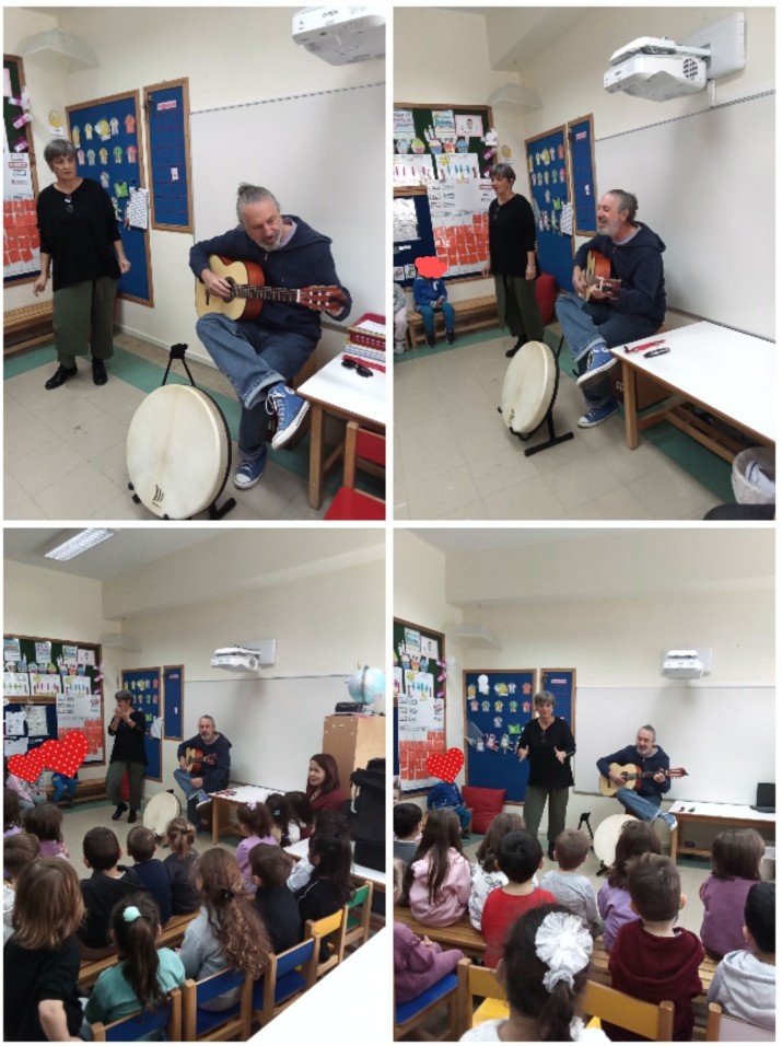 Σήμερα είχαμε τη χαρά να φιλοξενήσουμε στο σχολείο μας μια ιδιαίτερη δράση, γεμάτη μαγεία και μηνύματα. Η αγαπημένη αφηγήτρια παραμυθιών Μαρία Μαχαίρα και ο μουσικός Αντώνης Καρασταμάτης παρουσίασαν στα παιδιά λαϊκά παραμύθια με θέμα την διαφορετικότητα. Μέσα από λέξεις και μελωδίες τα παιδιά είχαν την ευκαιρία να ταξιδέψουν σε κόσμους όπου η αποδοχή και ο σεβασμός προς το διαφορετικό παίζουν πρωταγωνιστικό ρόλο.