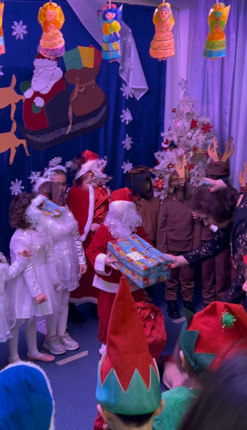 Τη Δευτέρα 23 Δεκεμβρίου 2024 πραγματοποιήθηκε η χριστουγεννιάτικη γιορτή μας!! Τα νήπια τραγούδησαν τα κάλαντα και συμμετείχαν στο θεατρικό “Παραμονή Πρωτοχρονιάς¨. Η γιορτή ήταν πολύ πετυχημένη και τα παιδιά συμμετείχαν με χαρά στην όλη διαδικασία. Η γιορτή πραγματοποιήθηκε με την παρουσία γονέων.