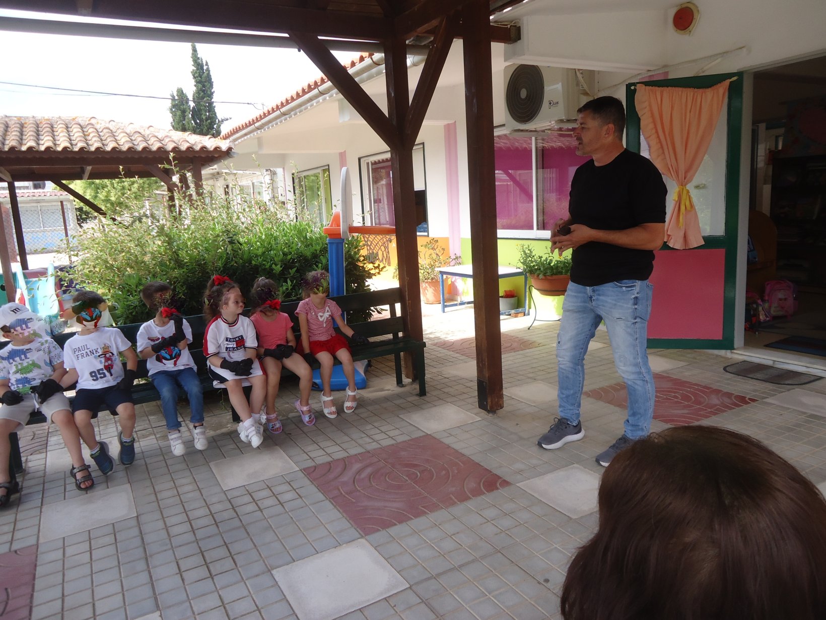Επίσκεψη των Υπευθύνων του Τομέα Καθαριότητας του Δήμου Δυτικής Αχαΐας στο Νηπιαγωγείο μας όπου συζήτησαν με τα νήπια- απάντησαν στις ερωτήσεις των παιδιών και βοήθησαν στη δημιουργία θετικού και εποικοδομητικού κλίματος. Στη συνέχεια μαζί με τα παιδιά επισκεφτήκαμε τους κοντινότερους κάδους -εξηγήσαμε τη διαφορετικότητά τους και αποθέσαμε τα ανακυκλώσιμα απορρίμματά μας στον αντίστοιχο κάδο