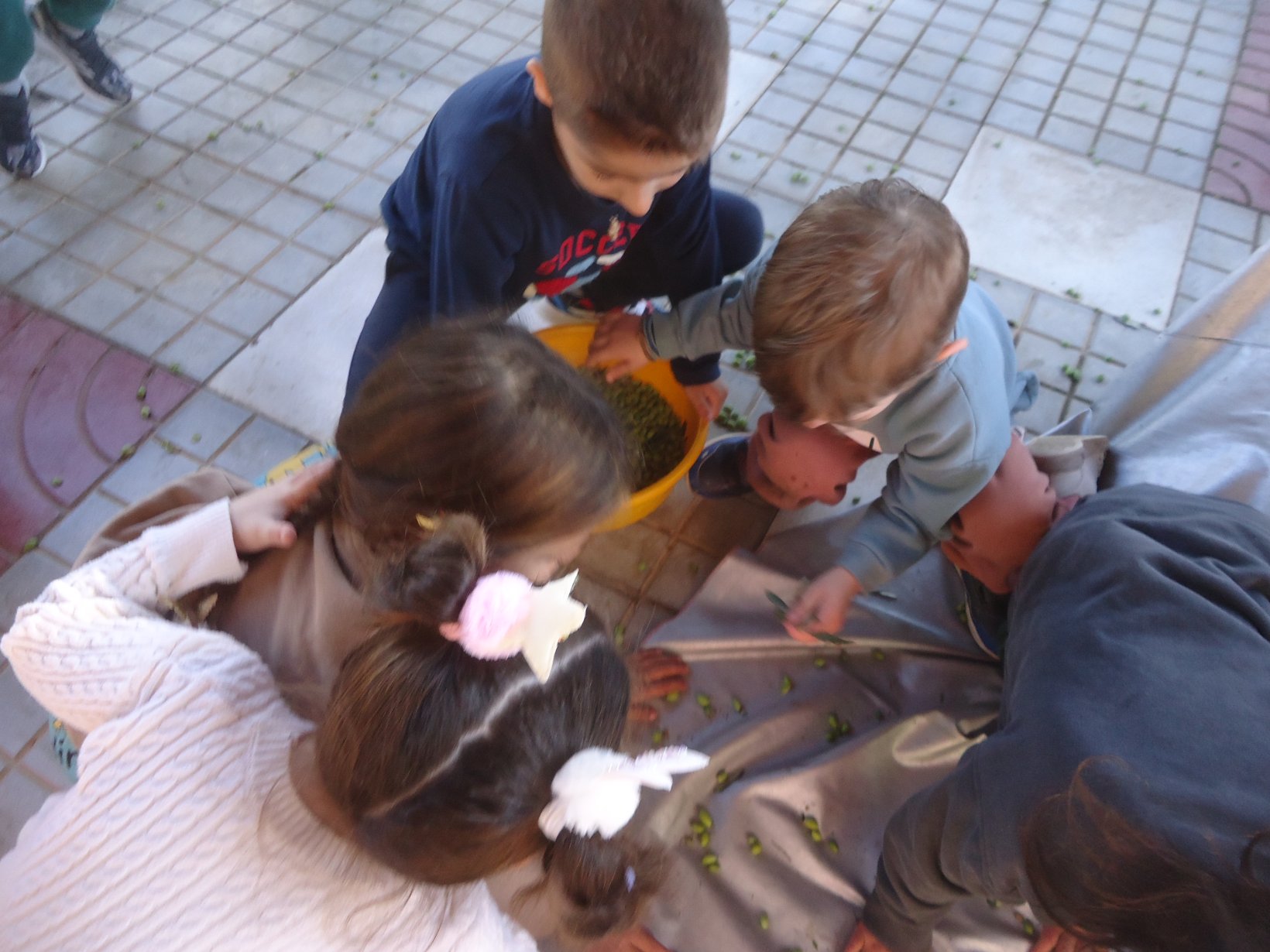 Το μάζεμα της ελιάς Δημοσιεύθηκε 7 Δεκεμβρίου 2025 από τον/την 1ο ΝΗΠΙΑΓΩΓΕΙΟ ΚΑΤΩ ΑΧΑΪΑΣ Μαζεύουμε ελιές μαζί με τα νήπια Στη συνέχεια κάνουμε πειράματα με το λάδι Τέλος ζωγραφίζουμε ελιές και φτιάχνουμε τον δικό μας Ελαιώνα