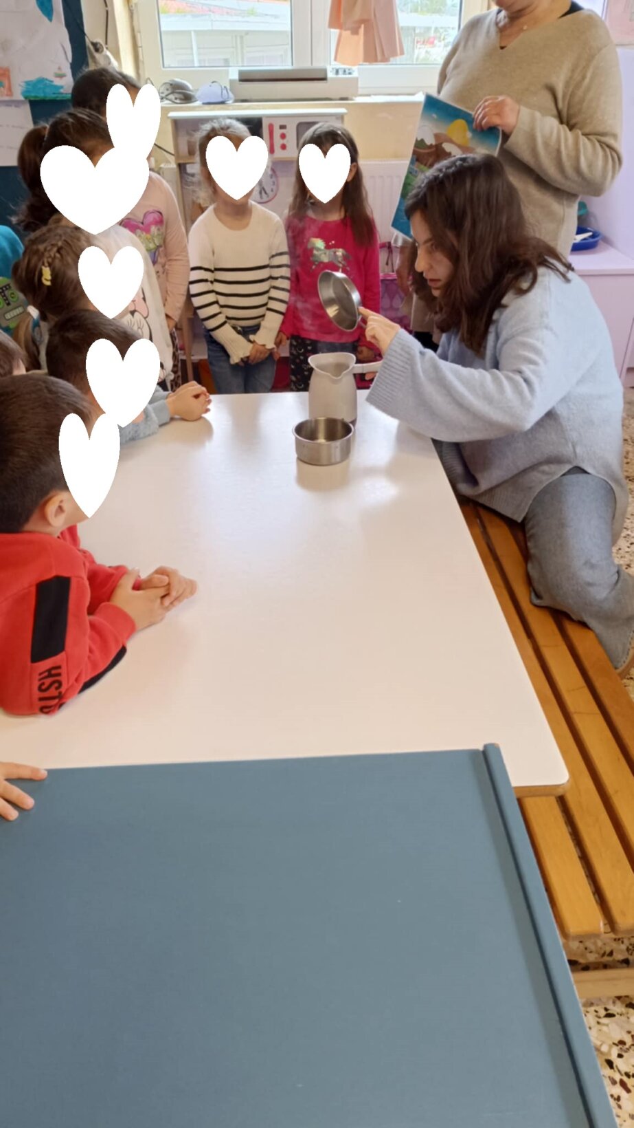 Επισκεφθήκαμε τα νηπιαγωγεία με τα οποία μοιραζόμαστε την ίδια αυλή και ενημερώσαμε για τις δράσεις μας τους μαθητές, τις μαθήτριες και τους/ τις εκπαιδευτικούς