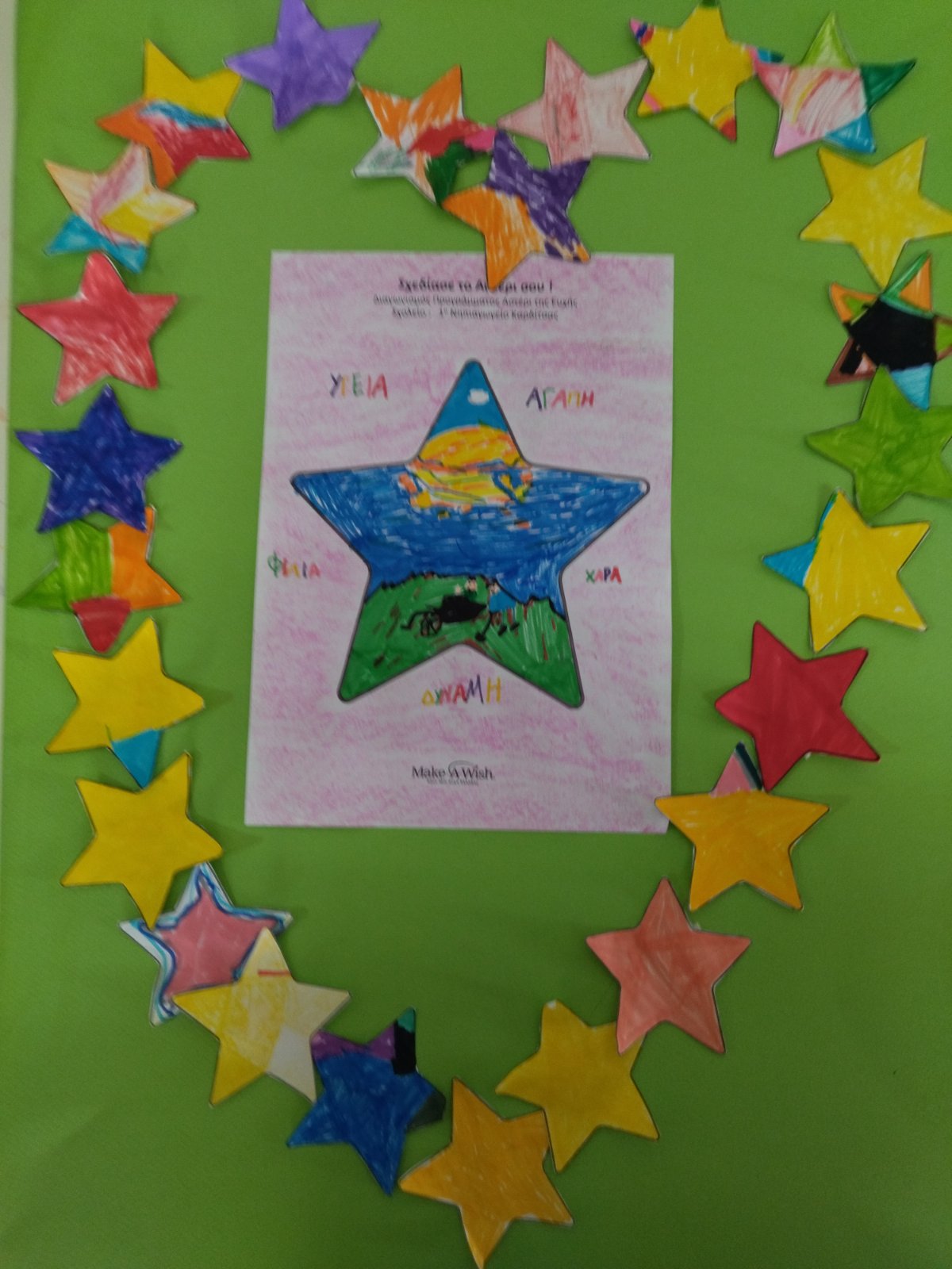 Το 1ο Νηπιαγωγείο Καρδίτσας αντλώντας έμπνευση από τις έννοιες της προσφοράς και του εθελοντισμού, το μήνυμα που πρεσβεύει το Αστέρι της Ευχής, συμμετέχει δημιουργικό διαγωνισμό του Προγράμματος με μία συλλογική δημιουργία στην κατηγορία Διαγωνισμού” Σχεδίασε το Αστέρι σου ”