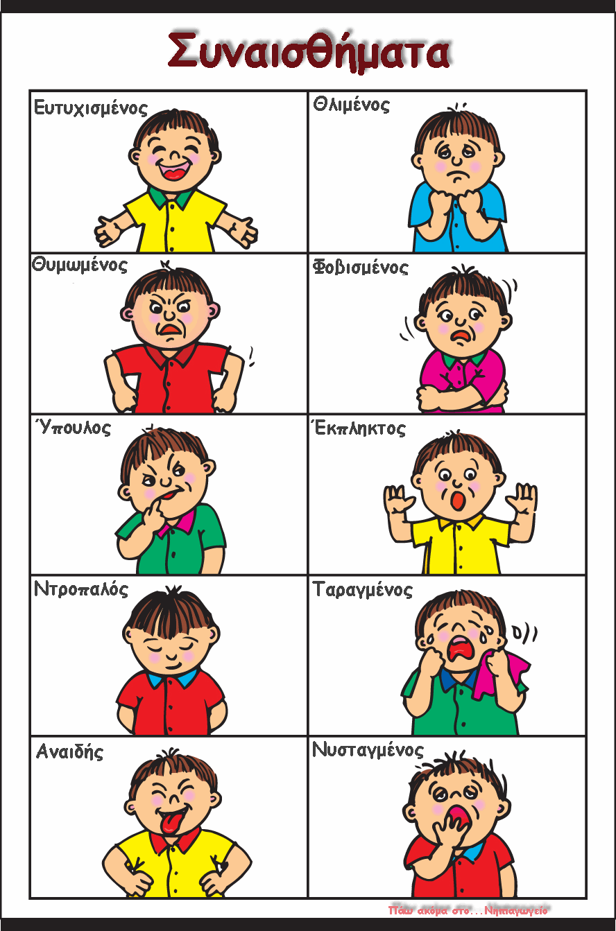 Αναφέραμε και άλλα συναισθήματα που γνωρίζουμε και κρεμάσαμε στον τοίχο έναν πίνακα αναφοράς ώστε να τον επεξεργαστούμε.