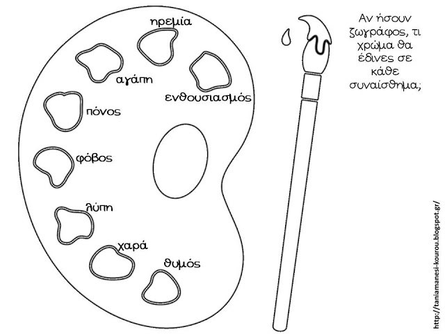 και στη συνέχεια διαβάσαμε την ”παλέτα των συναισθημάτων” και έβαλε ο καθένας το χρώμα που πιστεύει ότι έχει το κάθε συναίσθημα .