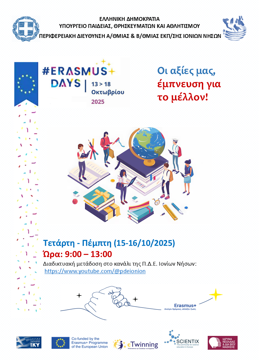 Οι φετινές εκδηλώσεις πραγματοποιήθηκαν διαδικτυακά από 15&16 Οκτωβρίου 2025 και στην Κέρκυρα διοργανώθηκαν από την Περιφερειακή Διεύθυνση Εκπαίδευσης Ιονίων Νήσων, σε συνεργασία με το Ίδρυμα Κρατικών Υποτροφιών (ΙΚΥ).