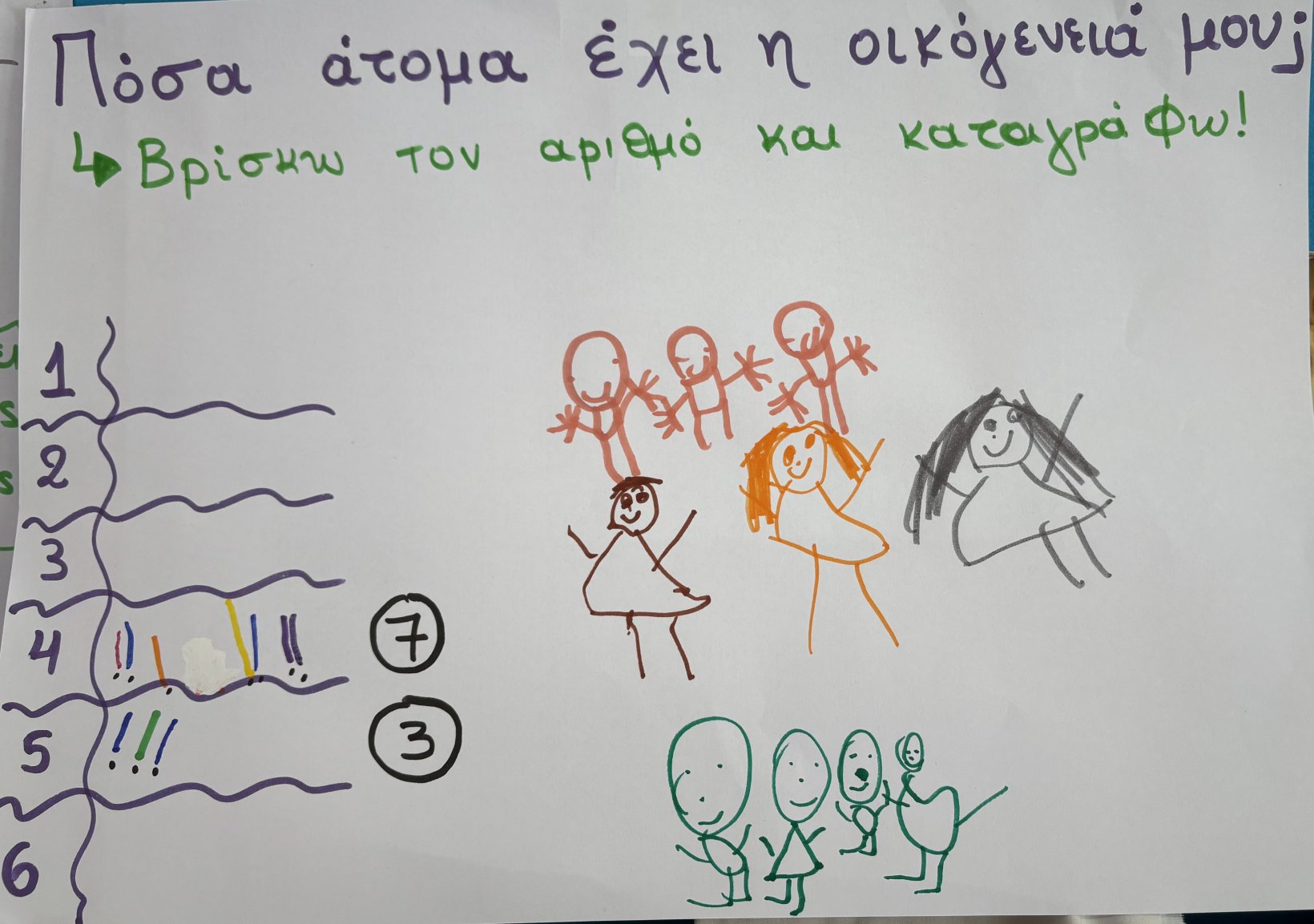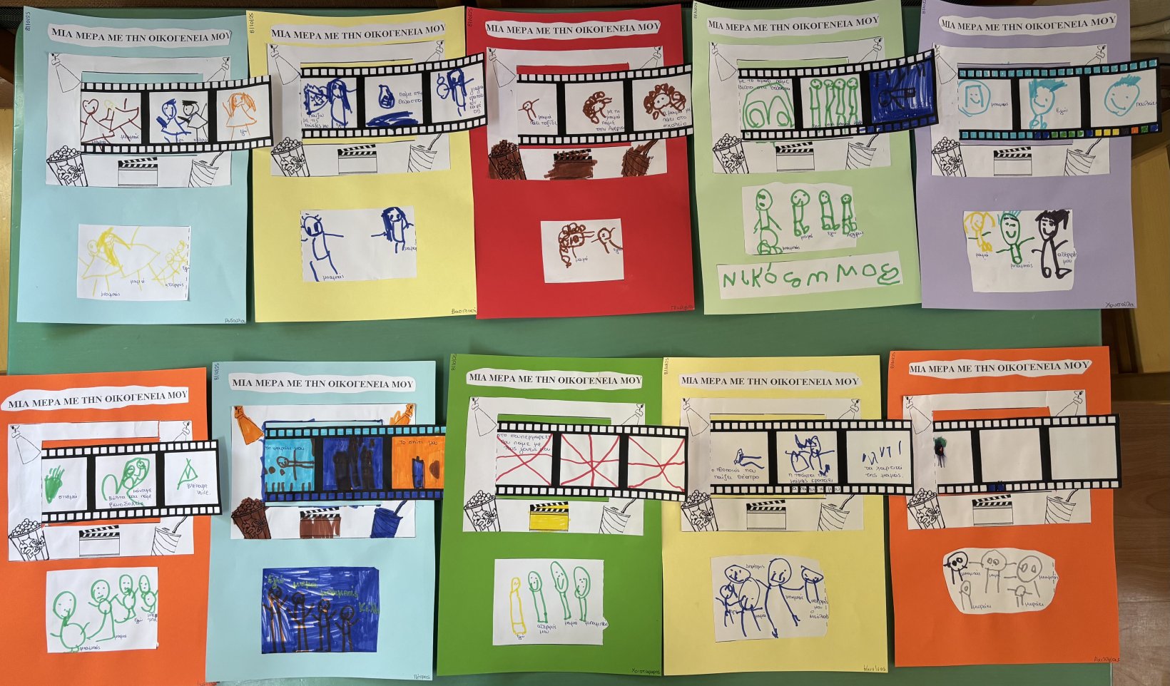 Επιπλέον, ακολούθησε η ατομική εργασία του κάθε παιδιού, στην οποία περιέγραψε “Μια μέρα με την οικογένεια μου”. Τα παιδιά θυμήθηκαν στιγμές οικογενειακές και τις ζωγράφισαν σαν μία ταινία.