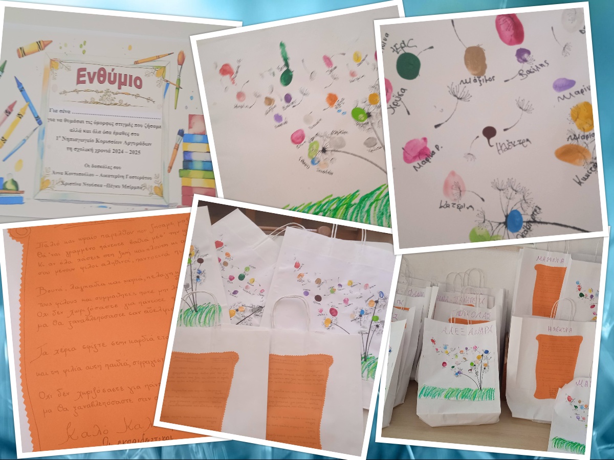 Έτοιμοι για τη γιορτή μας, έτοιμες και οι τσάντες με τις εργασίες μας με δωράκι, πολύχρωμα πουλιά-παιχνίδια. Στις τσάντες όλα τα δαχτυλάκια μας για να θυμόμαστε τους φίλους μας που περάσαμε μαζί μια ολόκληρη χρονιά!