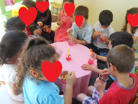 Απόλαυσαν το γλυκό τους στην αυλή αλλά όχι μόνα τους. Κάλεσαν και τους φίλους τους από τη δευτέρα Δημοτικού για να τους κεράσουν και να παίξουν μαζί τους.