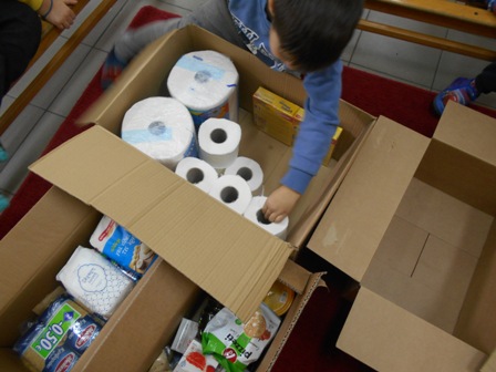 Στη συνέχεια τοποθετήσαμε τα προϊόντα στα κουτιά με προσοχή και τάξη αλλά και πολλή χαρά και αγάπη…