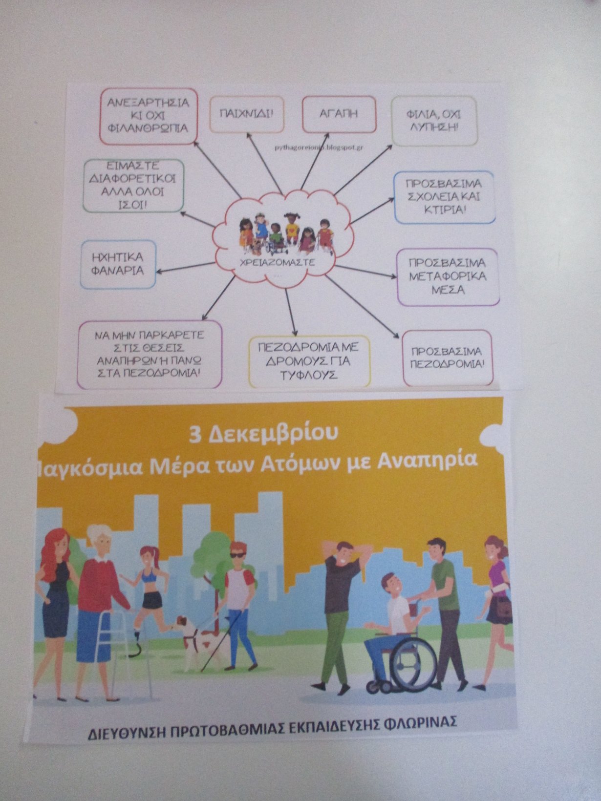 Με αφορμή την Παγκόσμια Ημέρα Ατόμων με Αναπηρία , έγιναν σήμερα 3/12/2025 εκπαιδευτικές δράσεις στο νηπιαγωγείο μας, με στόχο να καλλιεργήσουν τα παιδιά την ενσυναίσθηση και την ευαισθησία προς τα ΑΜΕΑ, να συζητήσουν για τις δυσκολίες που αντιμετωπίζουν στην καθημερινή τους ζωή, να συνειδητοποιήσουν ότι τα άτομα αυτά μπορούν να κάνουν τις δραστηριότητες που κάνουν όλοι οι άνθρωποι , απλά ίσως με λίγο διαφορετικό τρόπο.