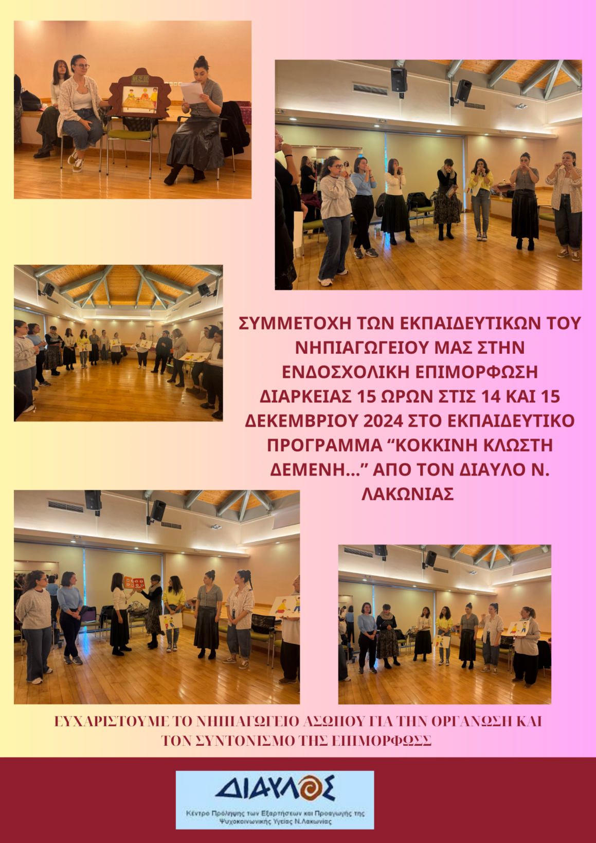 ΕΝΔΟΣΧΟΛΙΚΗ ΕΠΙΜΟΡΦΩΣΗ ΕΚΠΑΙΔΕΥΤΙΚΩΝ 7 Ιανουαρίου 202521 Σεπτεμβρίου 2025 Νηπιαγωγείο ΝεάποληςΗ Ιστορία μας...1ο Νηπιαγωγείο Νεάπολης