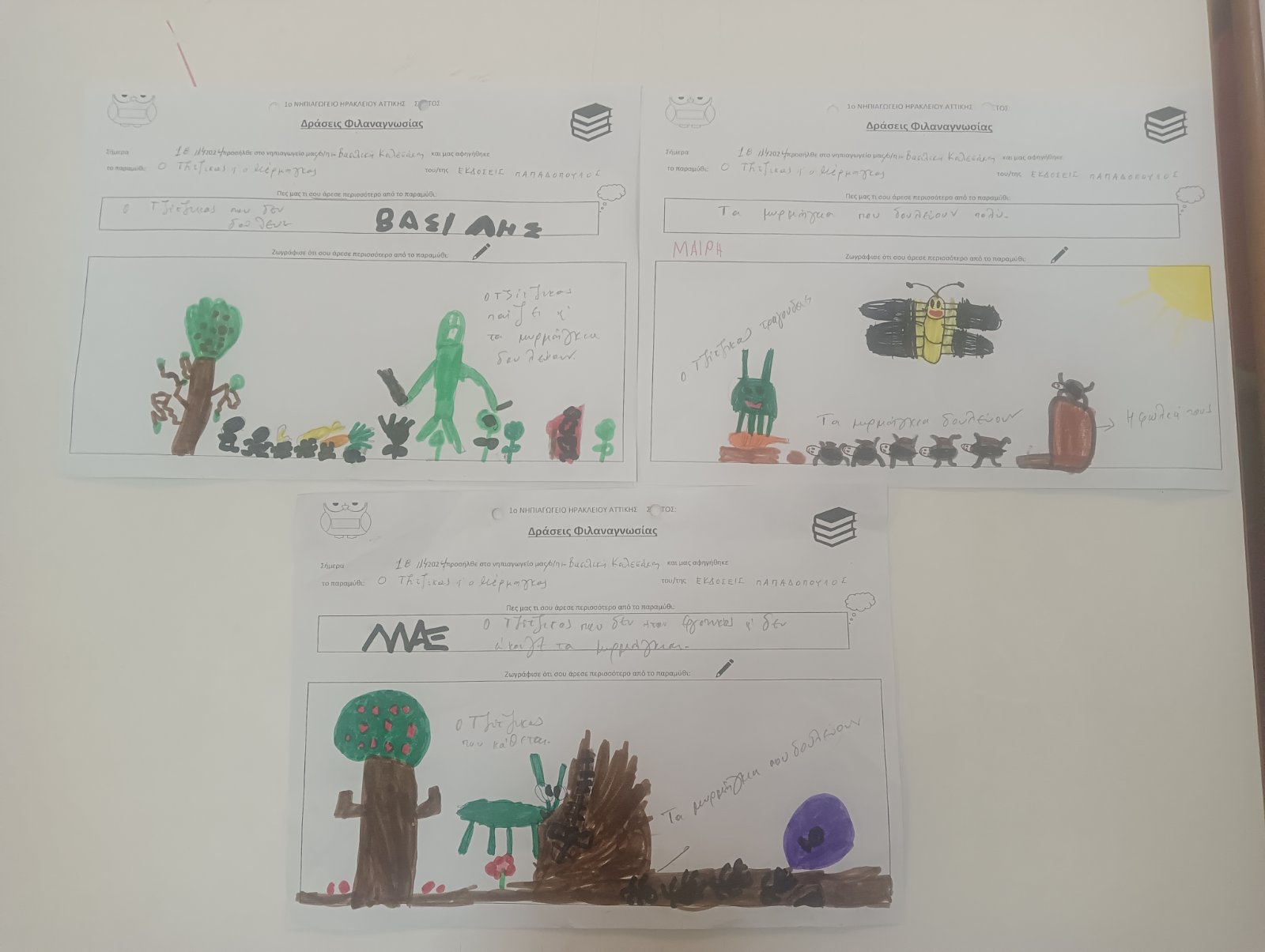 Σήμερα 18 Νοεμβρίου το σχολείο μας επισκέφθηκε μία μαμά του τμήματος 2 και παρουσίασε μαζί με το παιδί της το μύθο του Αίσωπου “Ο τζίτζικας και ο μέρμηγκας”.