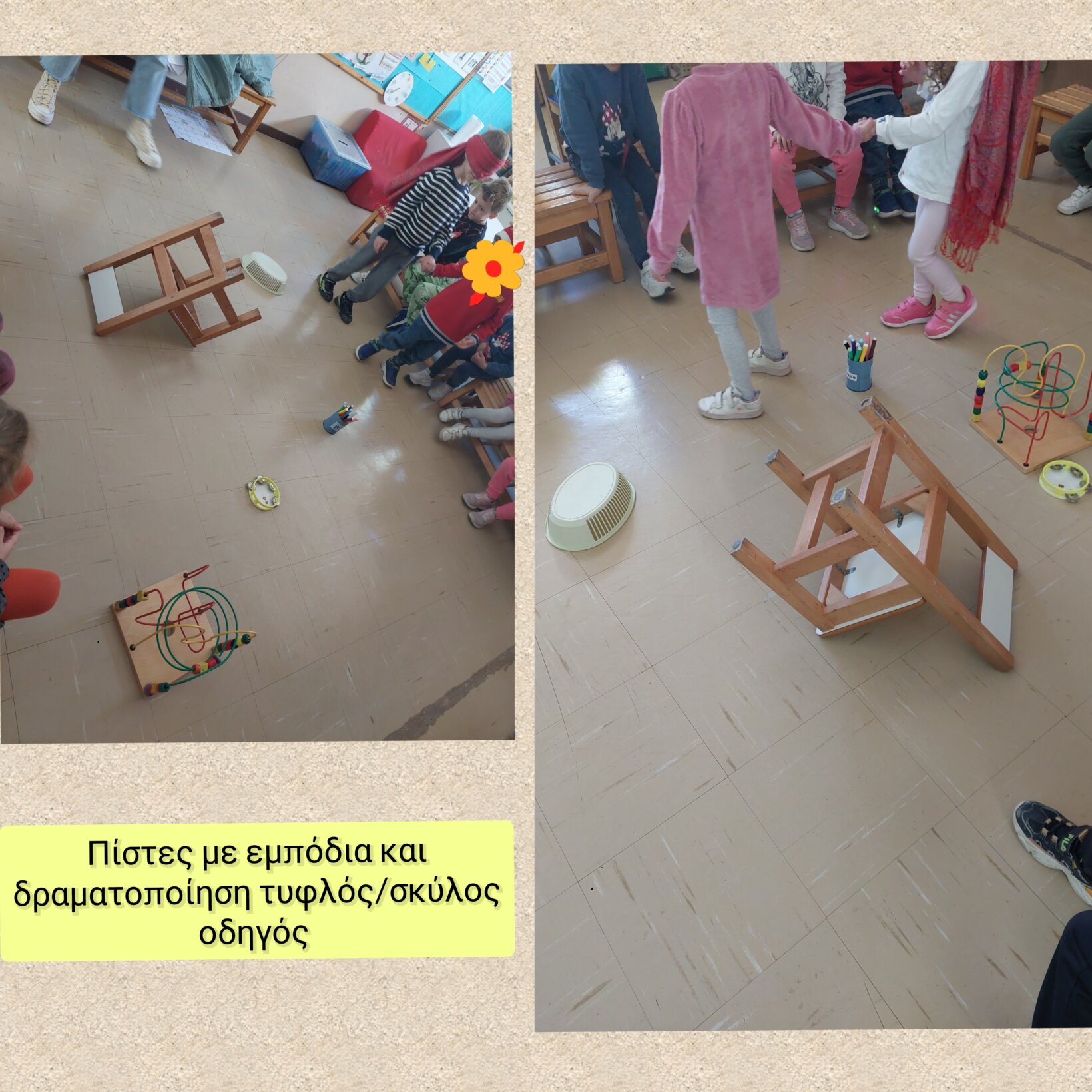 Στα πλαίσια της επίσκεψης Σκύλοι Οδηγοί Ελλάδος, για να προετοιμάσουμε τα παιδιά για τον τρόπο που ένας σκύλος μπορεί να βοηθήσει έναν τυφλό, μιλήσαμε για τις αισθήσεις και διαβάσαμε αντίστοιχα βιβλία! Συγκεκριμένα, οι μαθητές υποδύοντας τυφλούς ή σκύλους ή συνοδούς μπήκαν στις αντίστοιχες θέσεις. Ακολούθησαν παιχνίδια με τις αισθήσεις και τα παιδιά χάρηκαν ιδιαίτερα. Τέλος, με τη βοήθεια της bee-bot, τα παιδιά δίνοντας οδηγίες στη μελισσούλα, γινόντουσαν οδηγοί της, όπως δηλαδή είναι ένας εκπαιδευμένος σκύλος για έναν τυφλό.