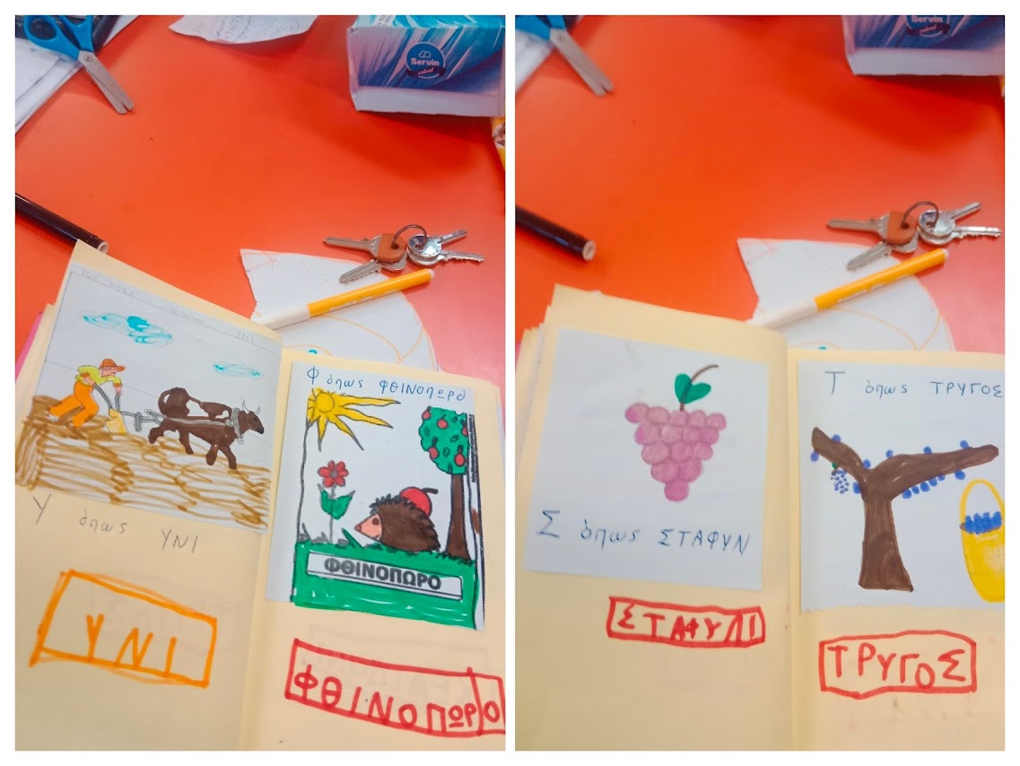 Βρισκόμαστε στην εποχή του φθινοπώρου και από καιρό επεξεργαζόμαστε το θέμα μιλώντας για τον καιρό που κάνει αυτή την εποχή, για τα πρωτοβρόχια και τη σπουδαιότητά τους για τις καλλιέργειες των αγροτών, για τον κύκλο του νερού, το μάζεμα της ελιάς, τον τρύγο, την σπορά και για τις ασχολίες των αγροτών. Ακολουθούν κάποιες από τις εργασίες μας σχετικά με αυτό το θέμα.