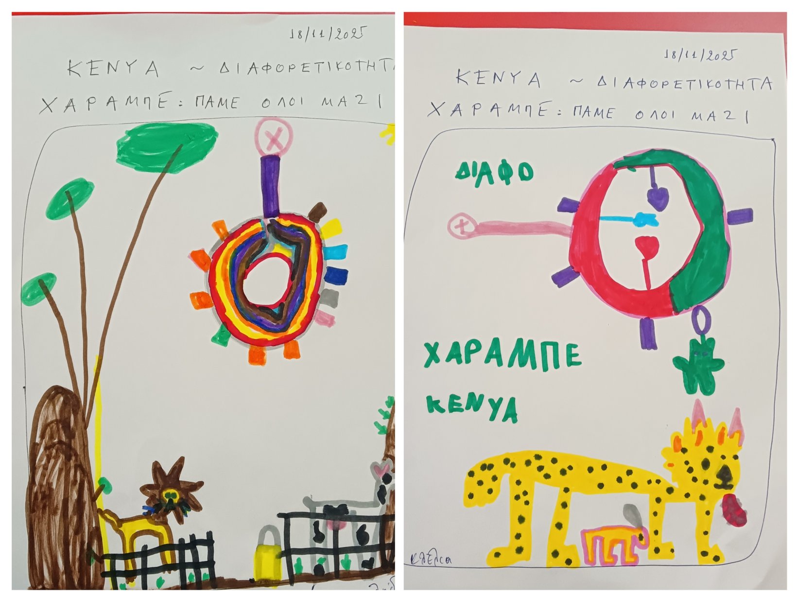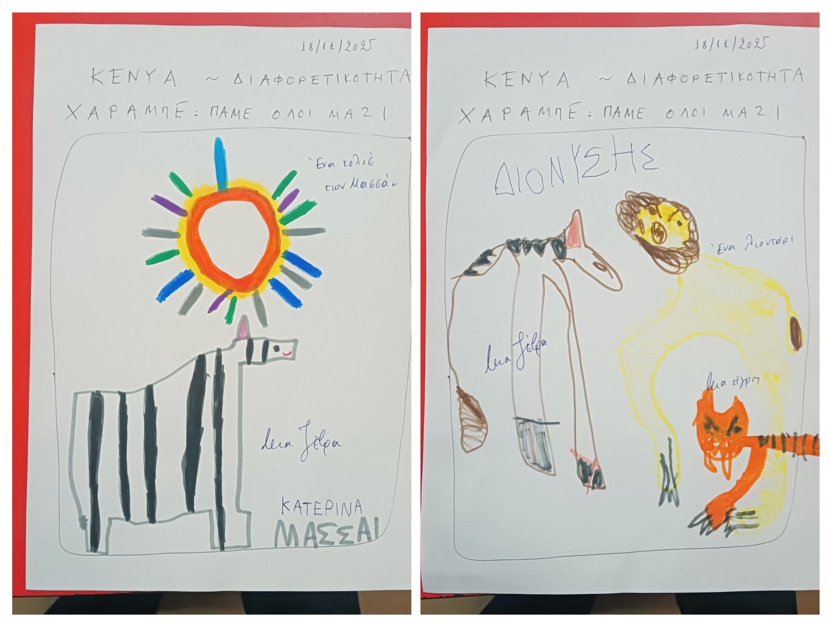 Είναι όλα γύρω μου ίδια ή διαφορετικά; Με αφορμή την ερώτηση από το συγκεκριμένο εργαστήρι, μιλήσαμε για τη διαφορετικότητα και κάναμε ένα μουσικοκινητικό παιχνίδι. Τα παιδιά χόρευαν σε ζευγαράκια σύμφωνα με το ρυθμό της μουσικής. Όταν σταμάταγε, εκείνα, ακούγοντας τη θεματική που τους είχαμε πει (μικρό-μεγάλο, χαρούμενο-λυπημένο, μέρα-νύχτα) έπαιρναν τον ανάλογο μορφασμό ή πόζα. Τέλος, δημιουργήσαμε φύλλα εργασίας, εξηγώντας πως καθένας μας είναι μοναδικός!