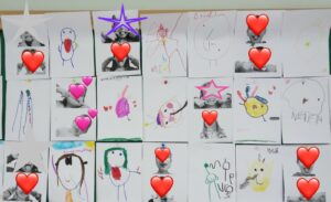 Τους δώσαμε το δώρο μας και παίξαμε μαζί τους ένα παιχνίδι. Μετρούσαμε τα θαλάσσια πλάσματα που υπήρχαν ζωγραφισμένα και κάποιο παιδί έγραφε τον αριθμό στον πίνακα.