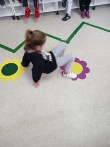 Βγήκαμε στην αυλή του σχολείου όπου τα παιδιά της Δευτέρας τάξης έπαιζαν με τον γυμναστή τους ένα παιχνίδι: « Γουρουνάκια και σπιτάκια». Μας προσκάλεσαν να παίξουμε μαζί τους και το κάναμε με χαρά.