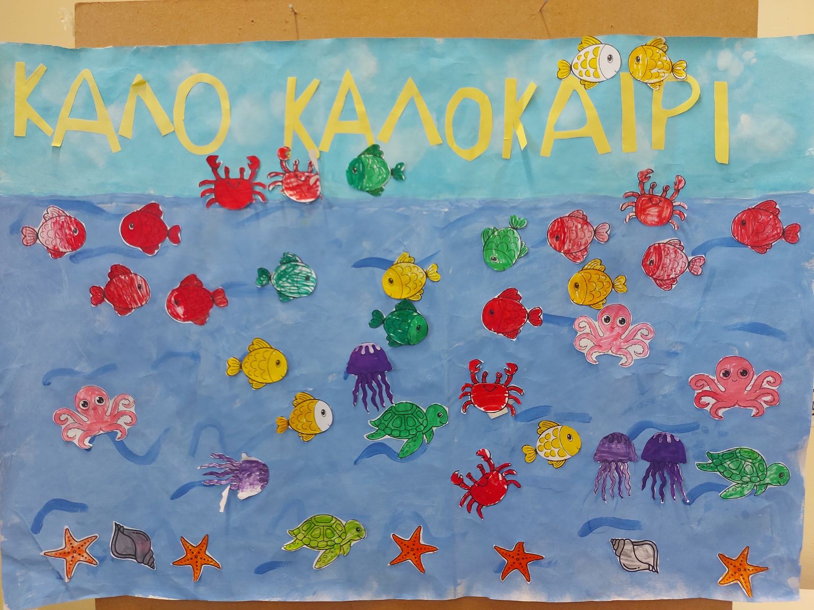 Τους δώσαμε το δώρο μας και παίξαμε μαζί τους ένα παιχνίδι. Μετρούσαμε τα θαλάσσια πλάσματα που υπήρχαν ζωγραφισμένα και κάποιο παιδί έγραφε τον αριθμό στον πίνακα.