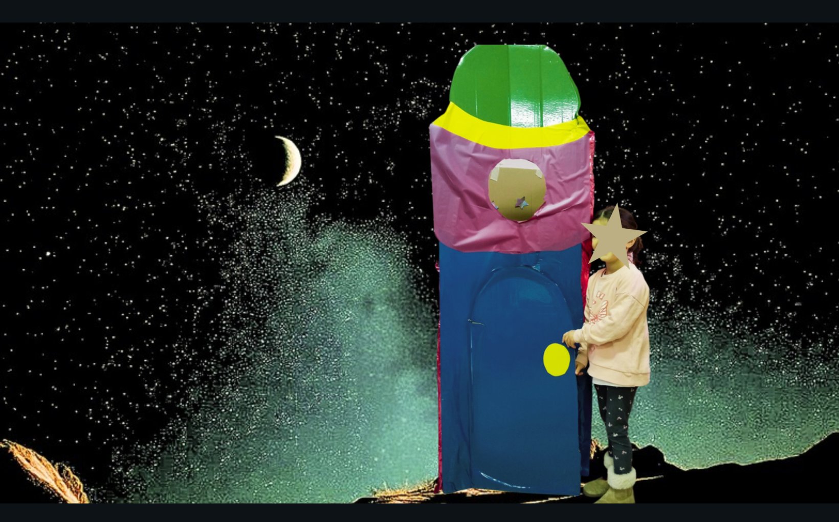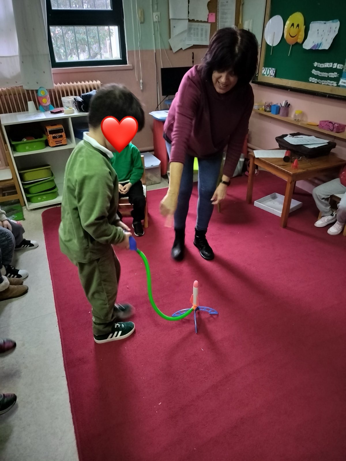 Φωτογραφιζόμαστε μπροστά στον πύραυλο που έχουμε κατασκευάσει στην τάξη μας και επεξεργαζόμαστε την φωτογραφία με την χρήση εφαρμογής τεχνητής νοημοσύνης .