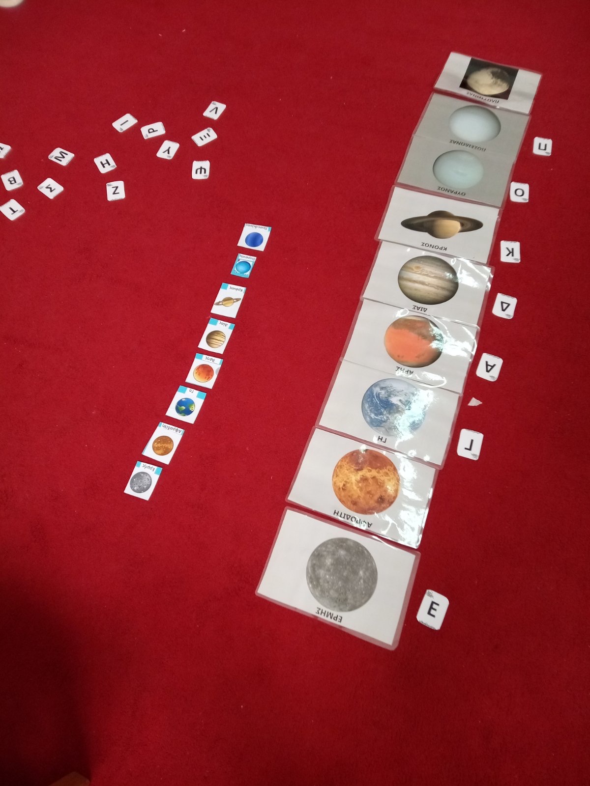 Αντιστοιχούμε τα αρχικά από τα ονόματα των πλανητών με τις εικόνες τους