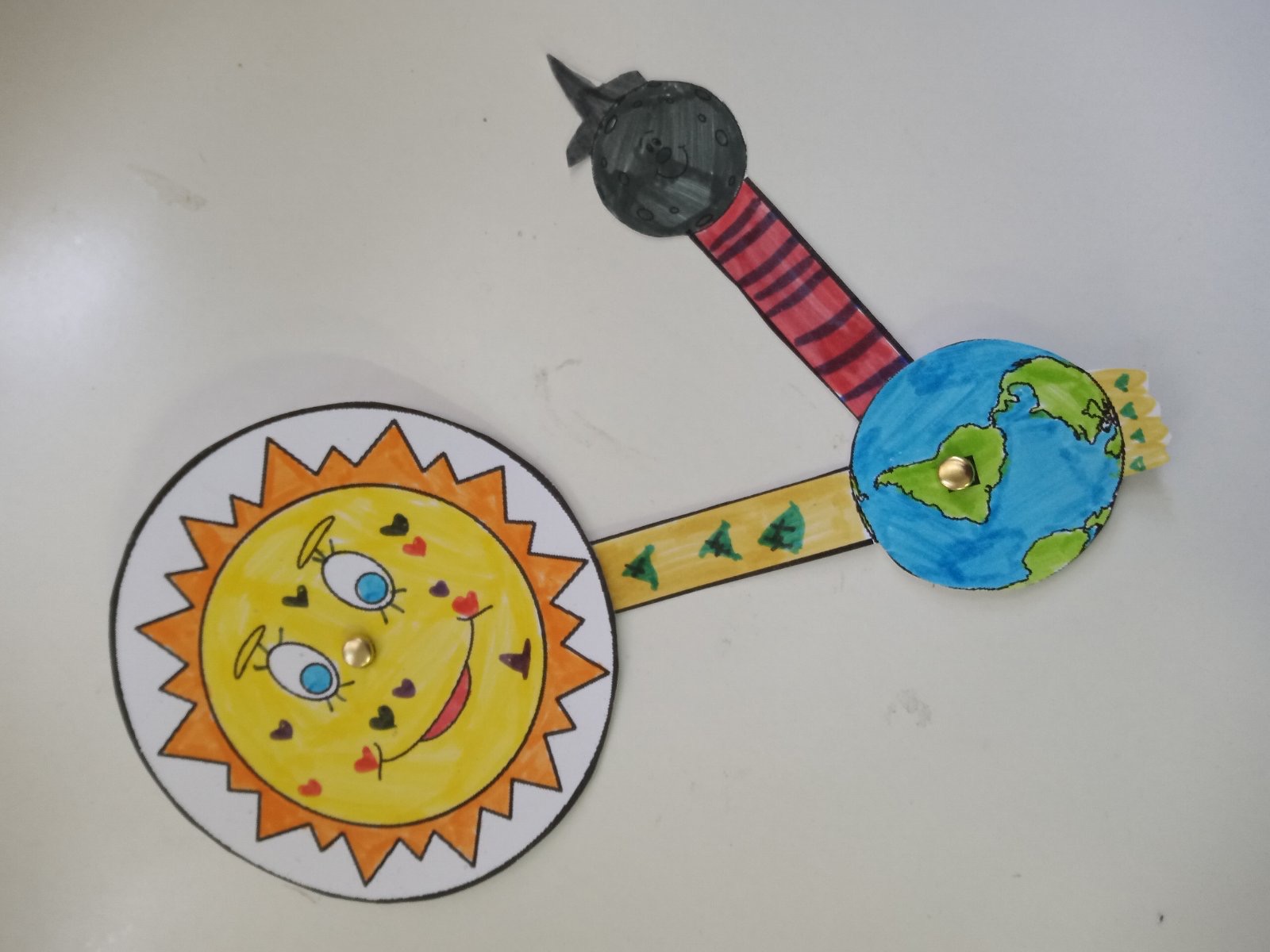 Συζητάμε για την περιστροφή της γης γύρω από τον ήλιο και της σελήνης γύρω από την γη. Το δραματοποιούμε και κάνουμε μια σχετική εργασία- κατασκευή
