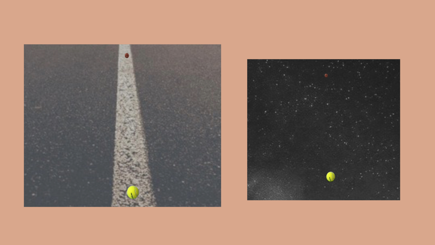 για τα μεγέθη και την απόσταση γης – σεληνης. Αν η γη ήταν μια μπάλα του μπάσκετ , η σελήνη θα ήταν μια μπαλίτσα του πινκ πονκ. Η απόσταση τους είναι ίσαμε 30 φορές το μέγεθος της γης. Μετράμε λοιπόν 30 φορές την μπάλα του μπάσκετ και την βάζουμε σε αυτήν την απόσταση από μια μπάλα του πινκ πονκ. Με την βοήθεια της τεχνητής νοημοσύνης επεξεργάζομαι την φωτογραφία.