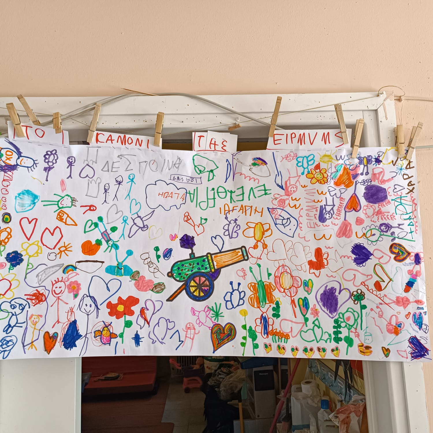 Τα παιδιά μέσα από οπτικό υλικό, φωτογραφίες, παραμύθια και βίντεο γνώρισαν την ιστορία του τόπου μας εξέφρασαν τα συναισθήματά τους για τον πόλεμο, αλλά και την αξία της ειρήνης.