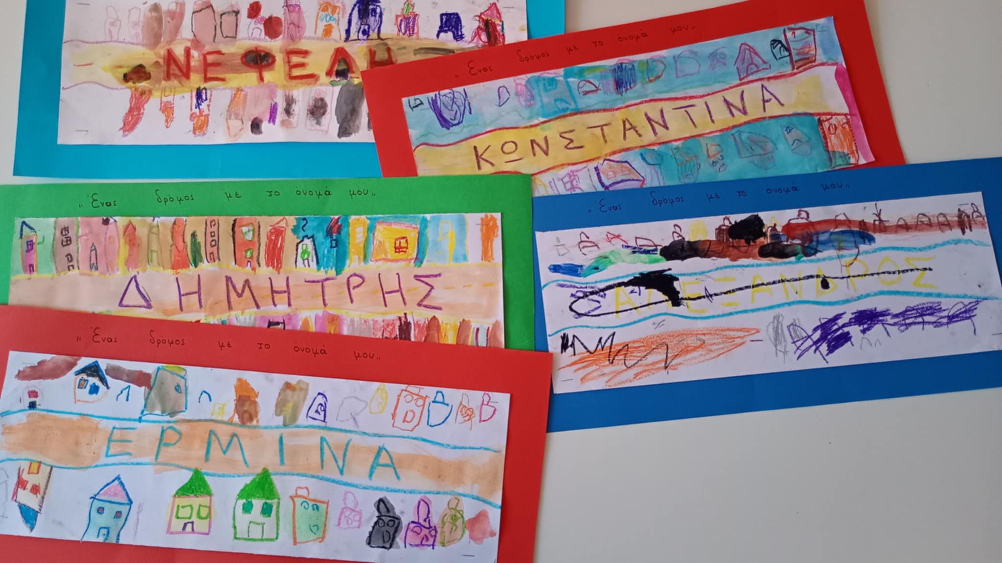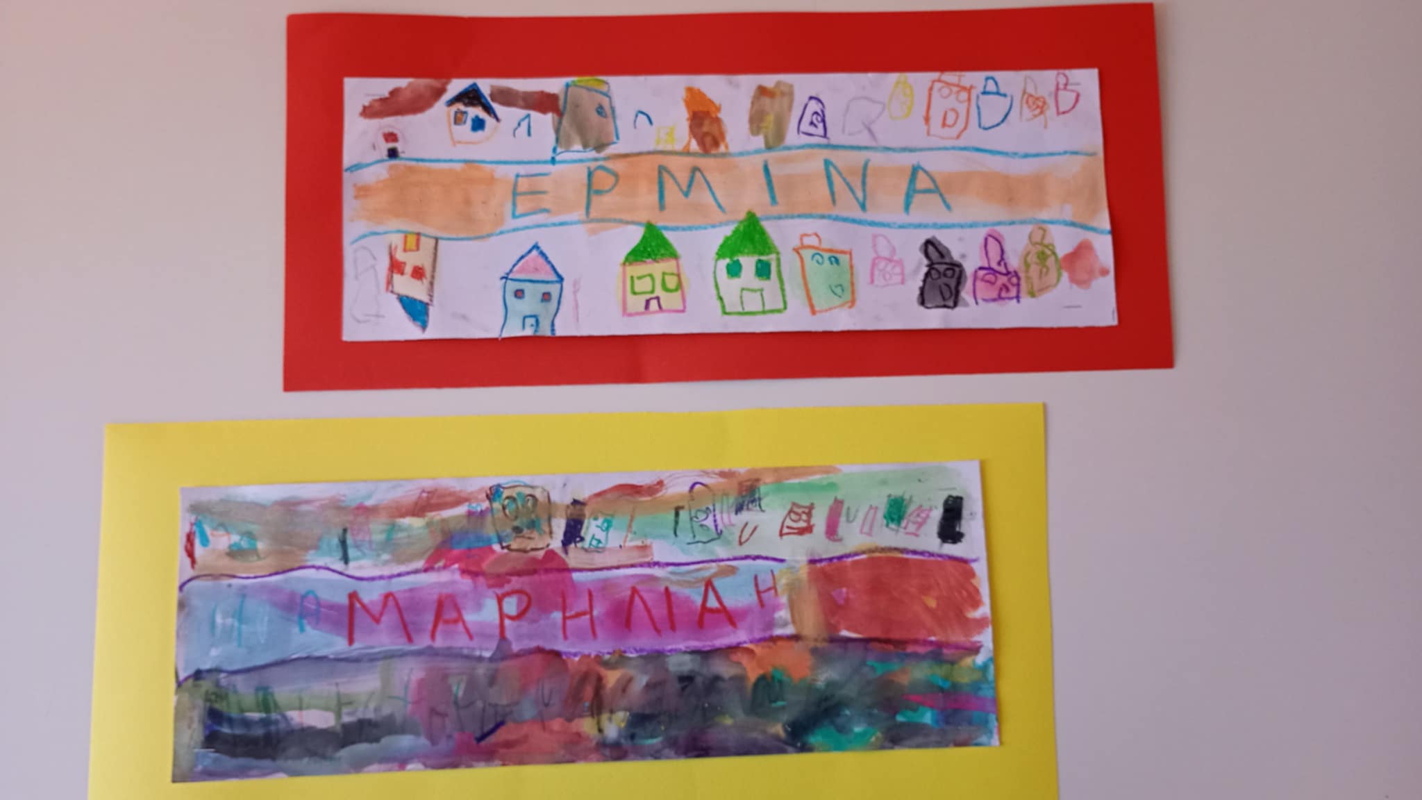 παίξαμε παιχνίδια με τα ονόματά μας και ζωγραφίσαμε με λαδοπαστέλ και νερομπογιές
