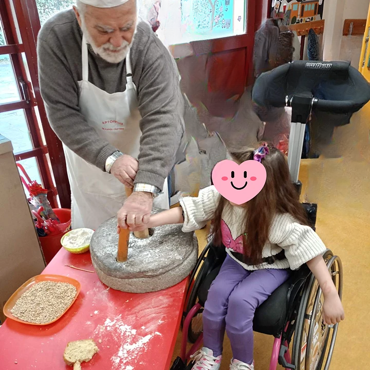Όλα ξεκίναγαν από τον γεωργό που τροφοδοτούσε τον μυλωνά με σιτάρι και αυτός με τη σειρά του τον φούρναρη με αλεύρι. Τα παιδιά έμαθαν να χρησιμοποιούν τον πετρόμυλο, αλλά και έναν πιο σύγχρονο ηλεκτρικό μύλο για να βγάλουν αλεύρι από το σιτάρι.