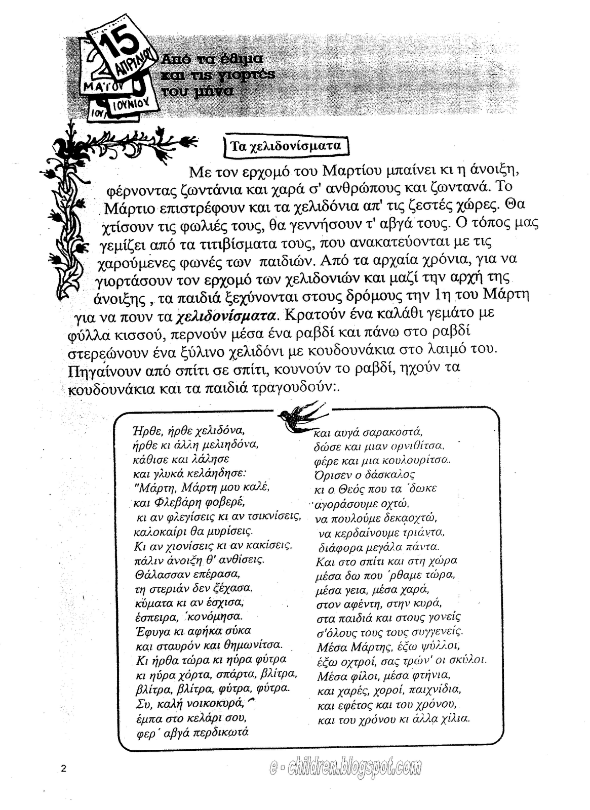 ΚΑΛΩΣΟΡΙΣΜΑ ΤΟΥ ΜΑΡΤΗ – ΧΕΛΙΔΟΝΙΣΜΑΤΑ