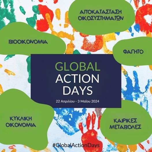 Το νηπιαγωγείο μας συμμετέχει στην Παγκόσμια Δράση “Global Action Days”, που διοργανώνεται από τον FEE (Στην Ελλάδα εκπροσωπείται από την Ελληνική Εταιρεία Προστασίας της Φύσης). Πρόκειται για μια ετήσια πρωτοβουλία που διεξάγεται εδώ και 10 χρόνια – αφιερωμένη στην ενδυνάμωση των σχολείων να αναλάβουν ουσιαστικές δράσεις που συμβάλλουν σε έναν πιο βιώσιμο και περιβαλλοντικά συνειδητοποιημένο κόσμο. Το κίνημα Global Action Days της FEE καταδεικνύει πώς μεμονωμένες ενέργειες, ανεξάρτητα από το πόσο μικρές φαίνονται, μπορούν να επηρεάσουν σημαντικά τη δική μας και την ευημερία του πλανήτη μας (της Γης μας) .