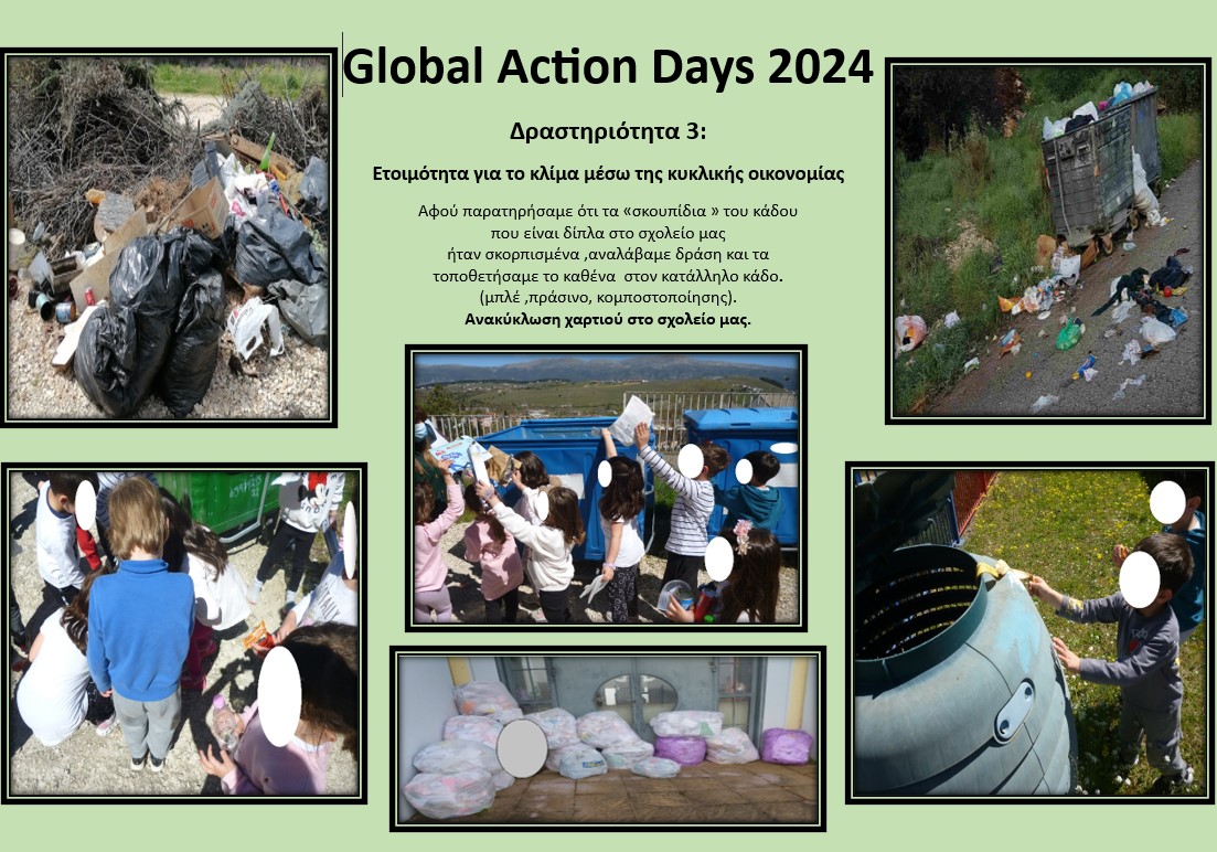 Στο πλαίσιο της Παγκόσμιας Εκστρατείας Global Action Days , όπου φέτος περιστρέφεται γύρω από τη δράση για το κλίμα, όπως ειπώθηκε και πιο πάνω, στο νηπιαγωγείο μας πραγματοποιήθηκαν οι ακόλουθες δραστηριότητες.