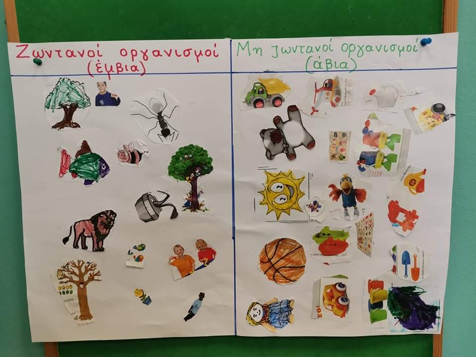 Τα παιδιά χωρίστηκαν σε 2 ομάδες και ομαδοποίησαν με κολάζ τα έμβια και τα άβια.