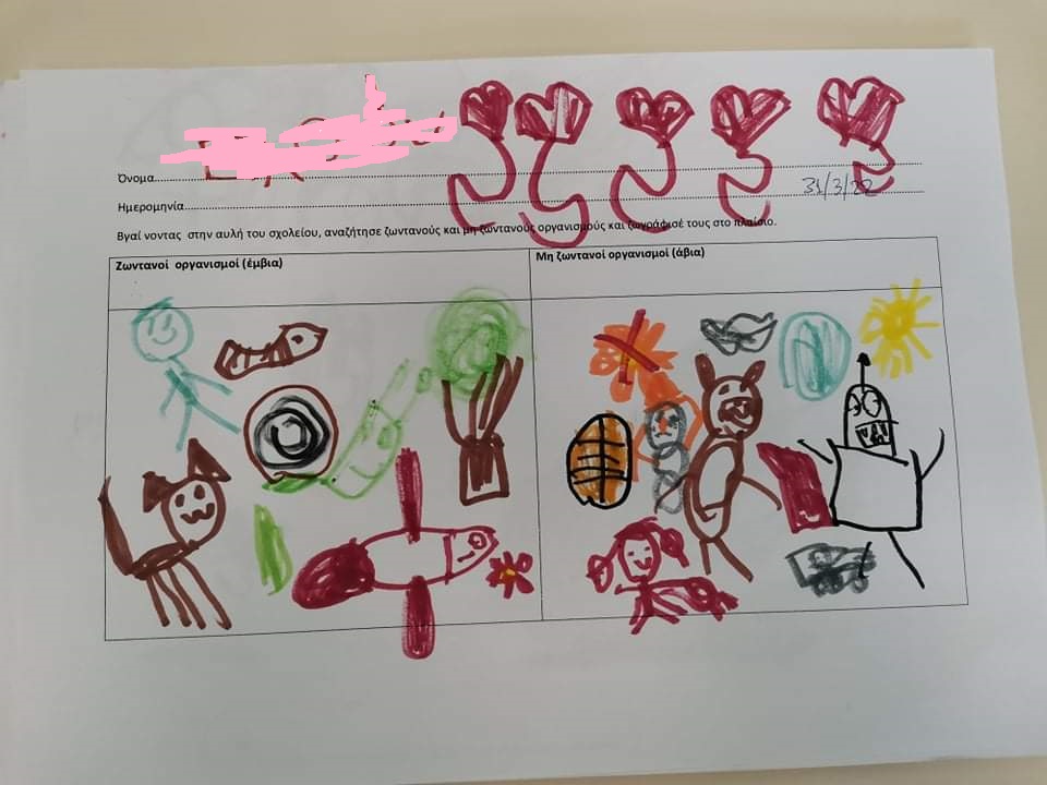 2η Δραστηριότητα: Φ.Ε.: Ζωγραφίζουν όσα είδαν και πιστεύουν ότι είναι ζωντανοί οργανισμοί.