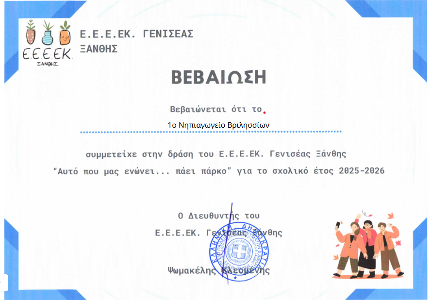 Συμμετοχή στην πανελλήνια δράση που αφορά στην παγκόσμια ημέρα αναπηρίας  3 Δεκεμβρίου “Το πάρκο που μας ενώνει”.