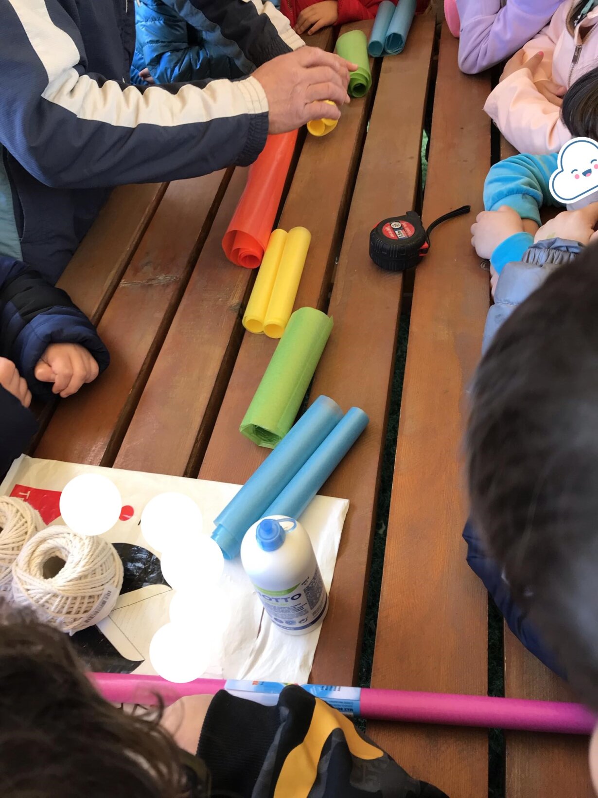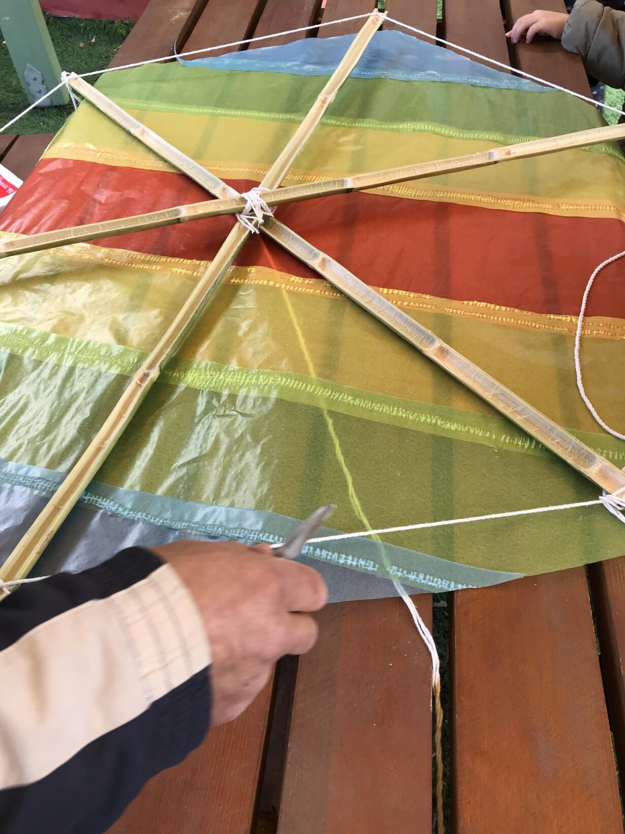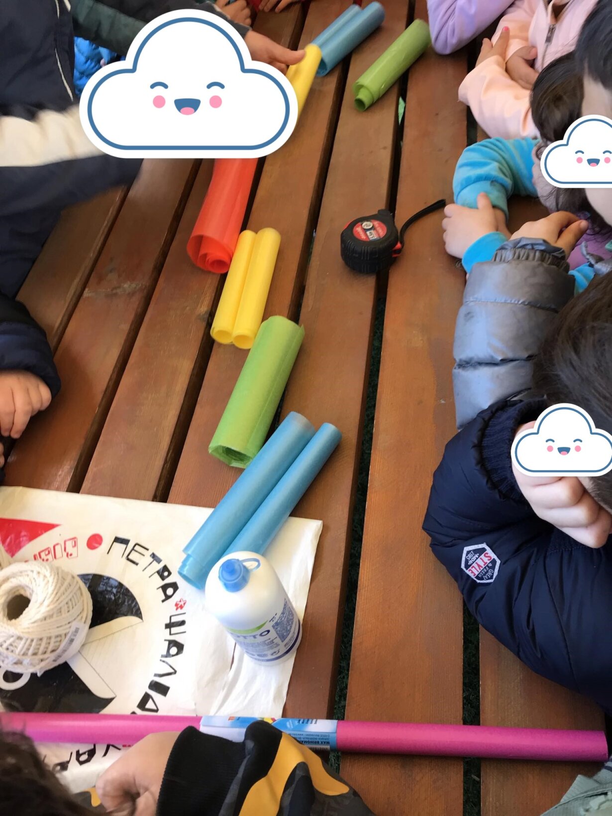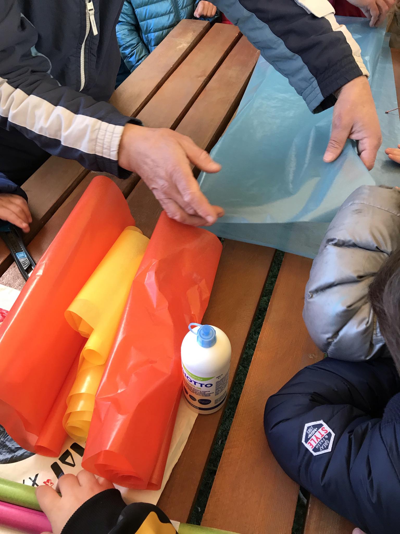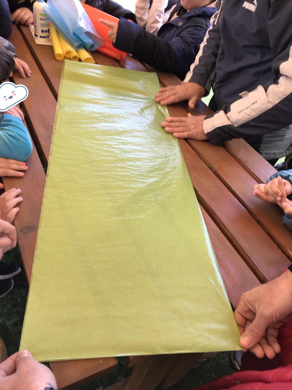 Με την καθοδήγησή του υπολογίσαμε, μετρήσαμε, κόψαμε και κολλήσαμε τα χρωματιστά χαρτιά του και όλα αυτά που χρειάζονταν ο χαρταετός μας για να είναι έτοιμος για την πρώτη δοκιμαστική του πτήση στην αυλή του σχολείου μας!