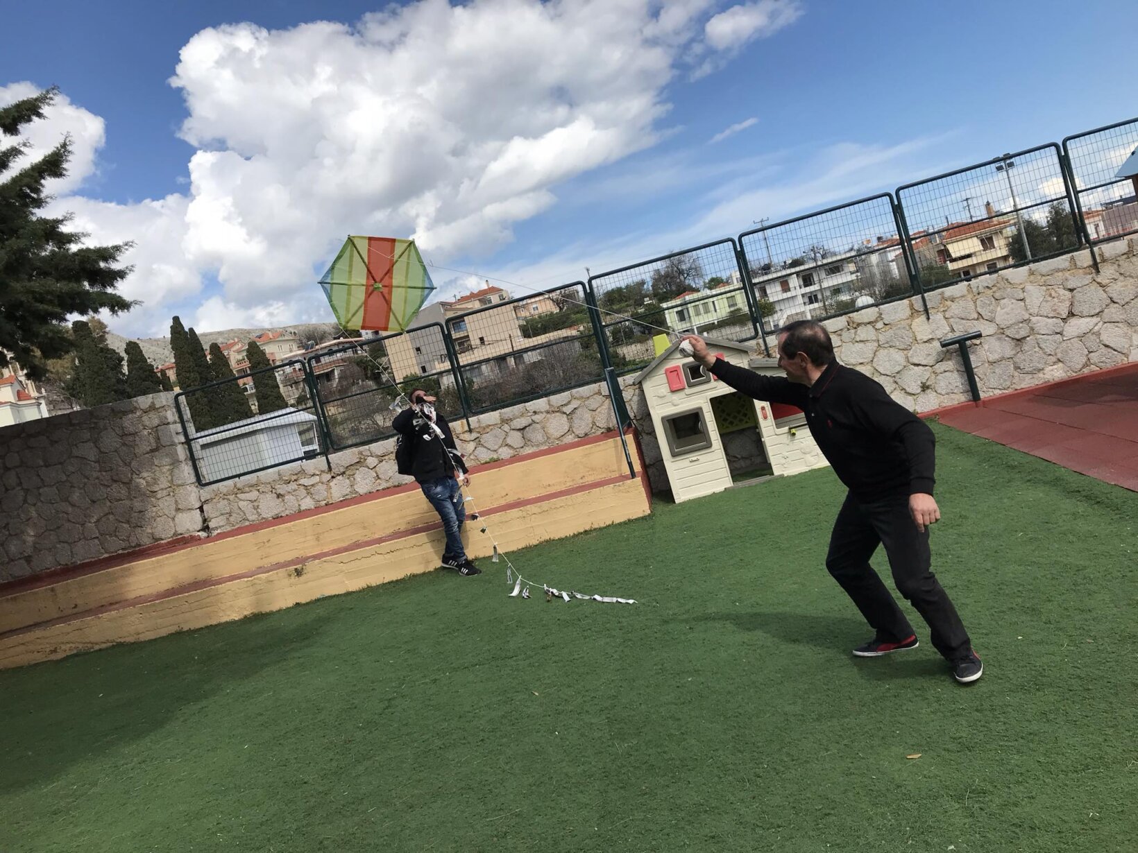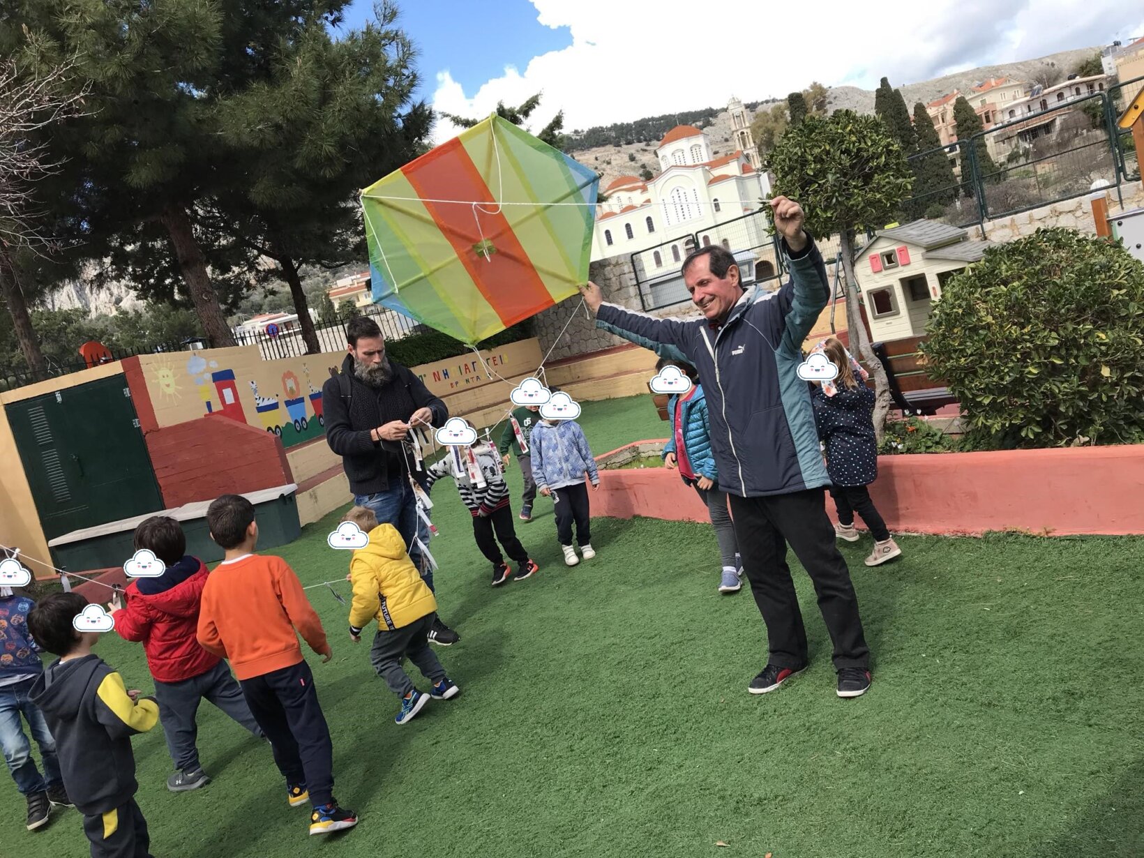 Με αφορμή το έθιμο της Καθαράς Δευτέρας οι μαθητές και οι μαθήτριές μας παρακολούθησαν την κατασκευή ενός χαρταετού πραγματικών διαστάσεων στην αυλή του σχολείου μας.