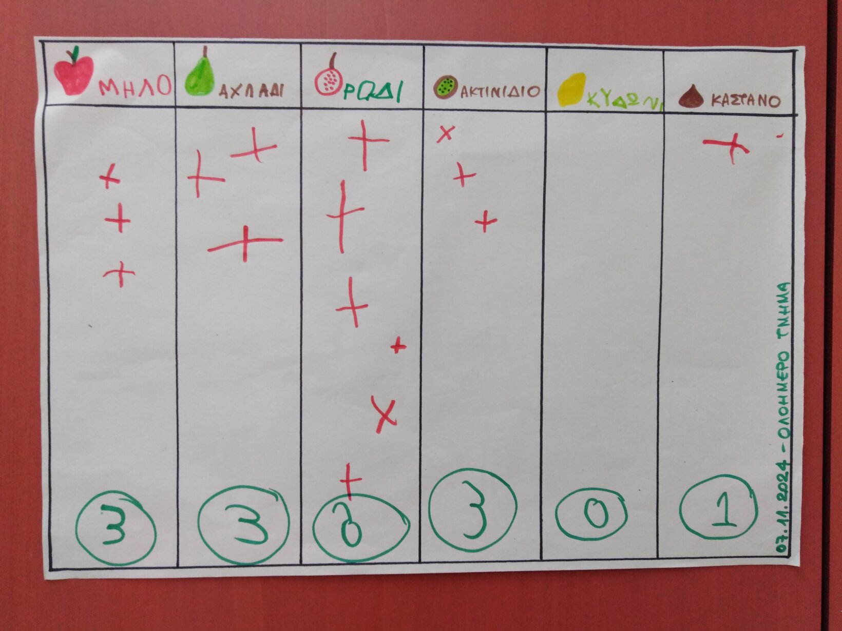 Γνωρίσαμε τα φρούτα και τους καρπούς του φθινοπώρου. Ψηφίσαμε το αγαπημένο μας φρούτο, αλλά και πως μας αρέσει να τρώμε το μήλο.
