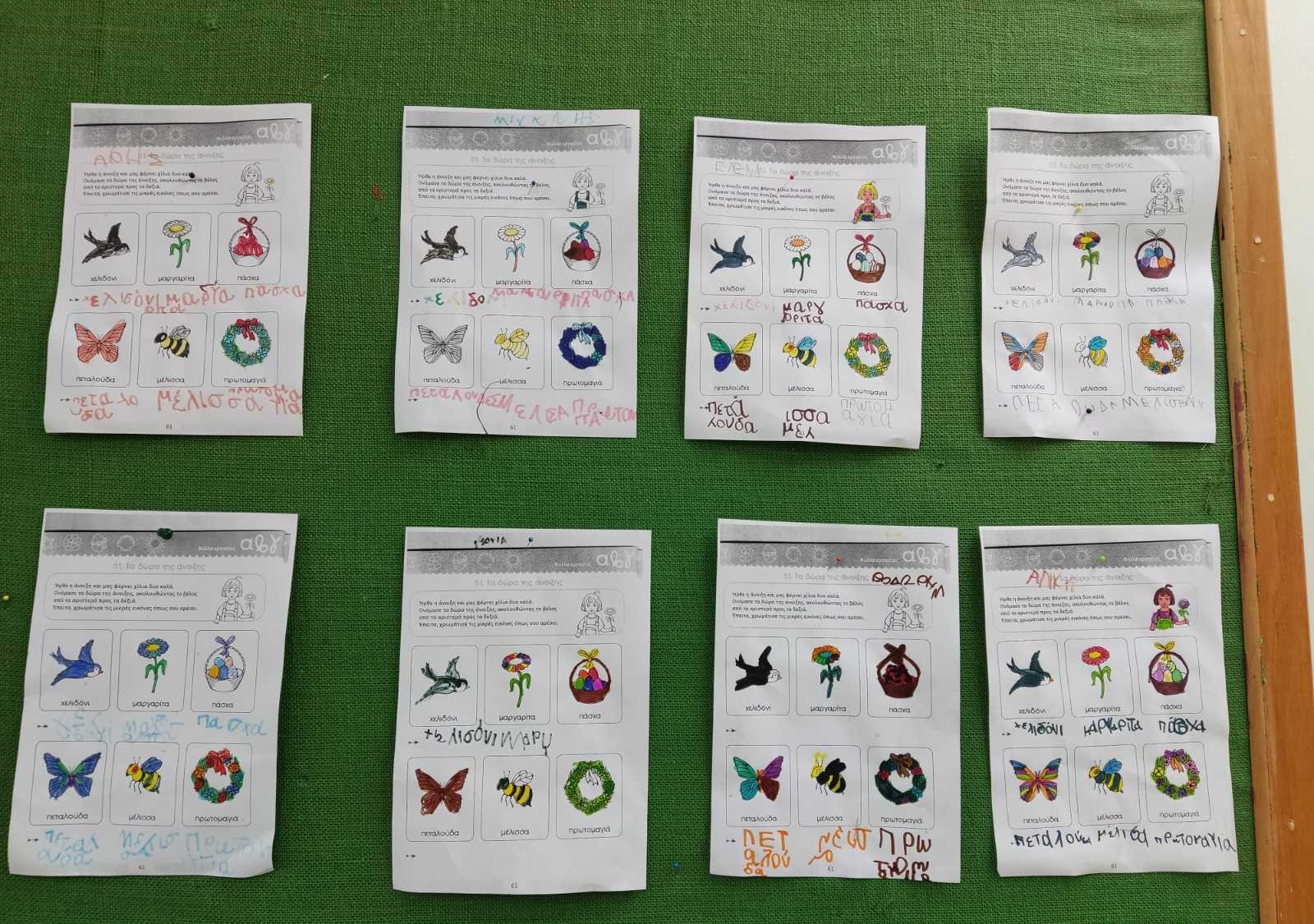 Τέλος, έγιναν τα ίδια τα παιδιά κάμπιες, έφτιαξαν κουκούλια και τυλίχτηκαν και στο τέλος έγιναν υπέροχες πεταλούδες που πέταξαν στην τάξη!