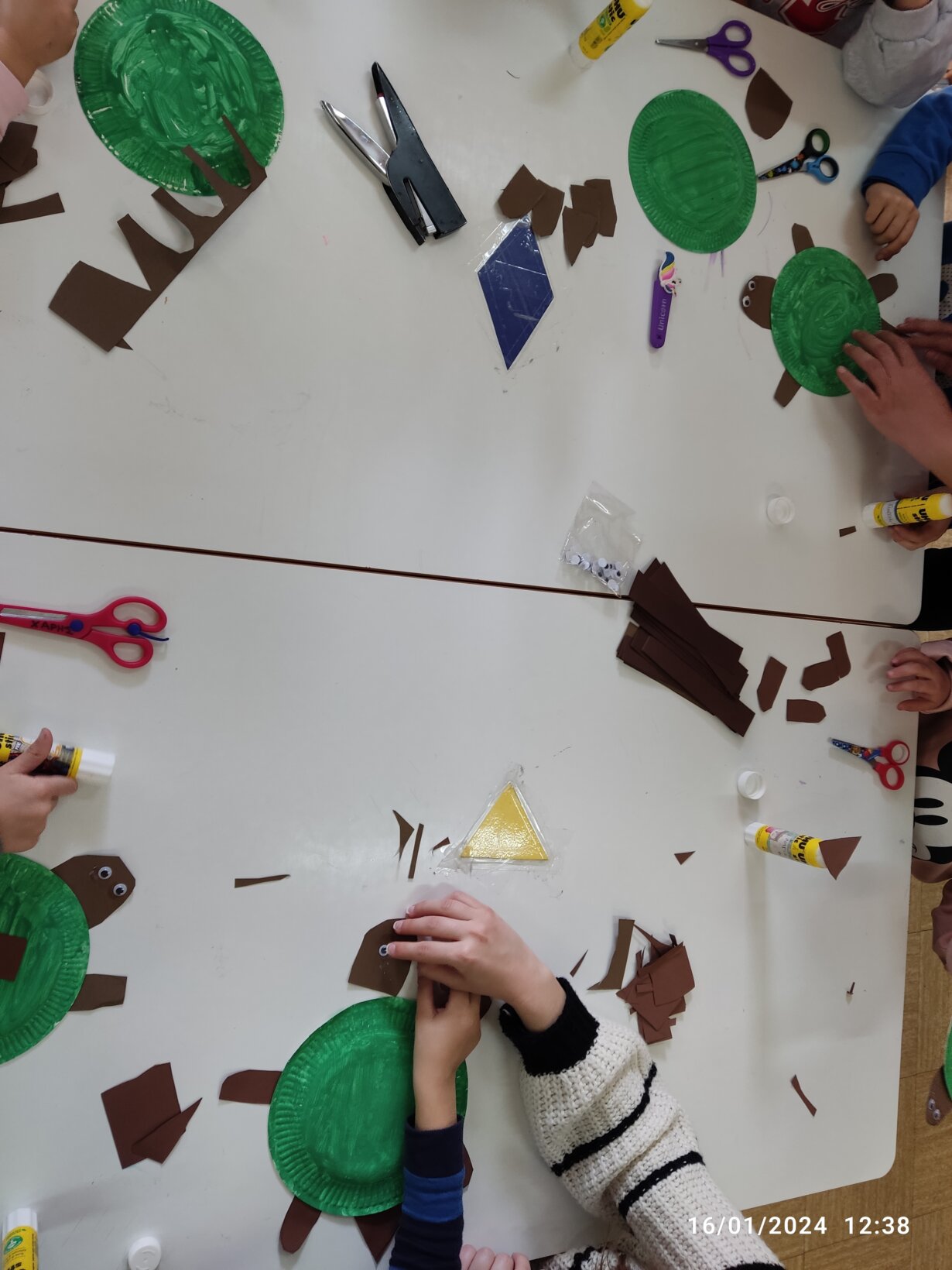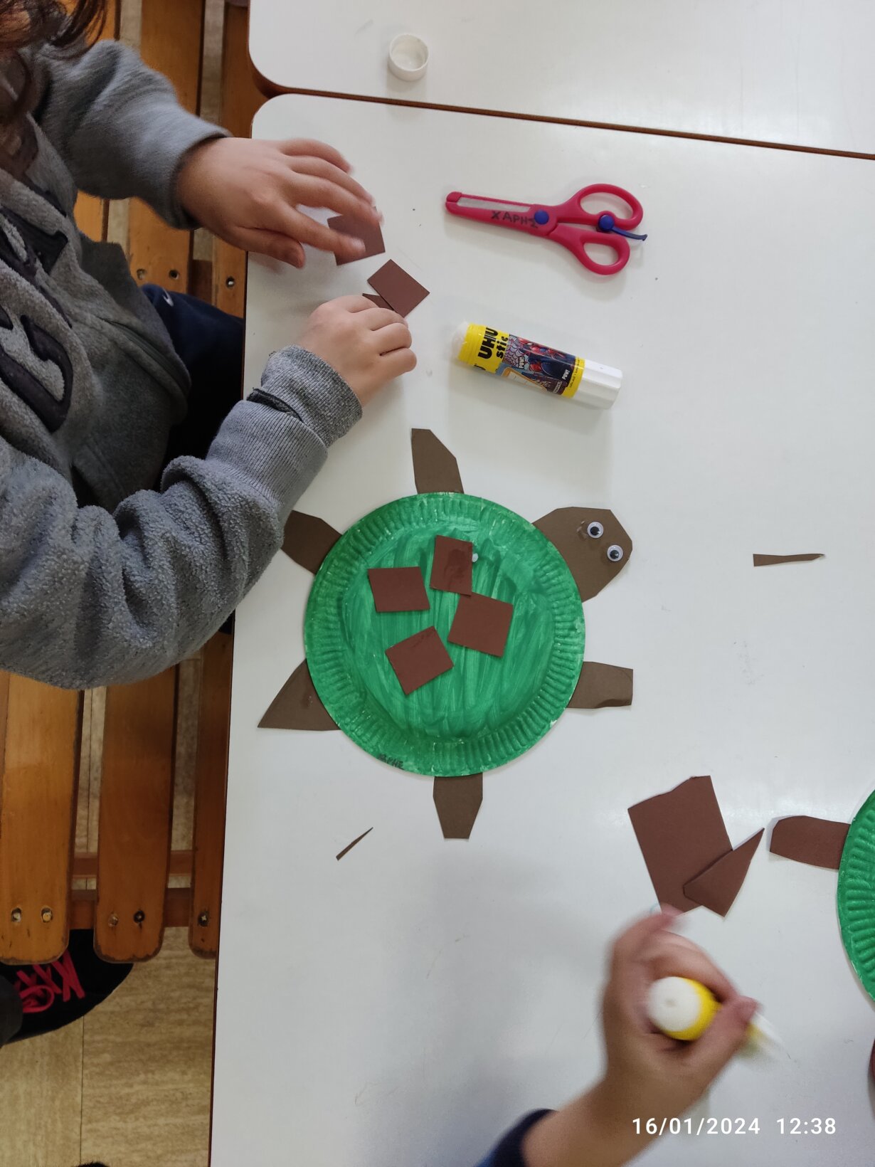 Κάναμε δραματοποίηση παραμυθιού. Η πάπια, το γουρουνάκι κι ο λαγός φροντίζουν το καημένο το βατραχάκι που κρυώνει μέσα στο χιονισμένο δάσος!