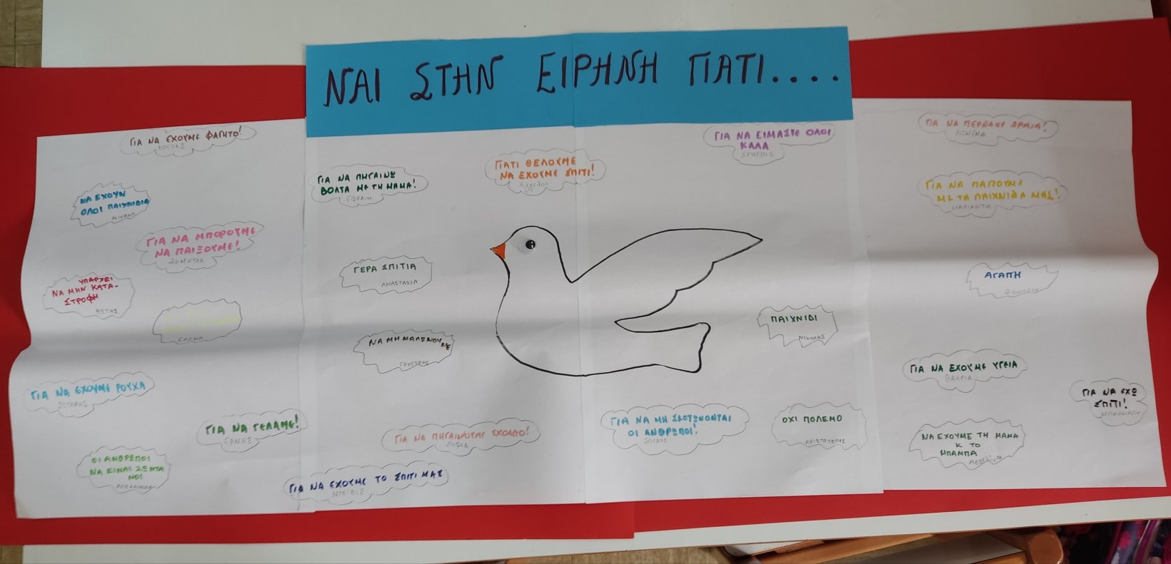Έτσι λοιπόν συζητησαμε αρκετά με τα παιδιά για τα δεινά του πολέμου και τη χαρά της ειρήνης.
