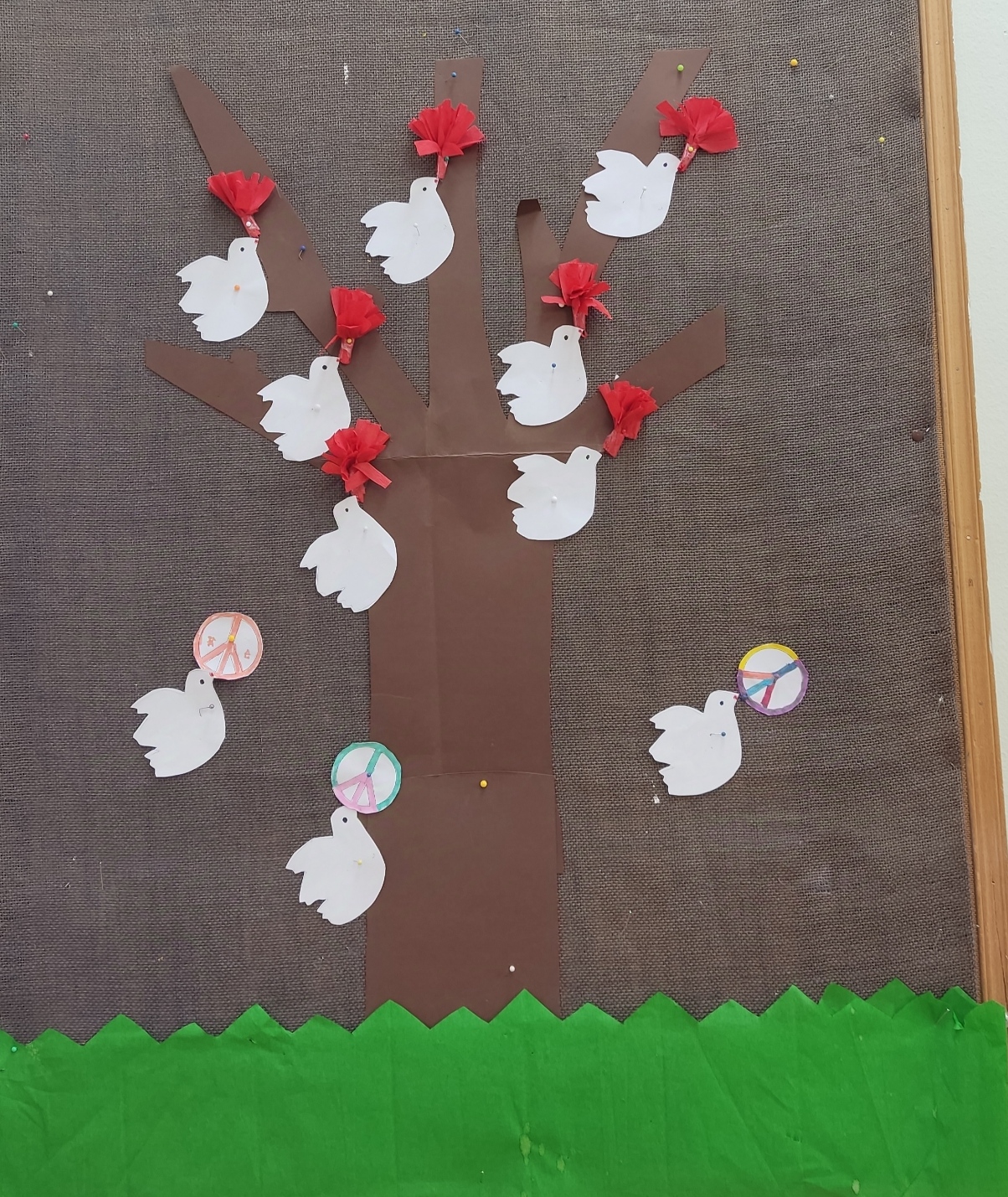 Τα περιστέρια που φέρουν το μήνυμα της Ειρήνης, φροντίσαμε να τα στολίσουμε στο δέντρο της αυλής ώστε όλοι να μπορούν να τα δουν και να λάβουν το μήνυμα!