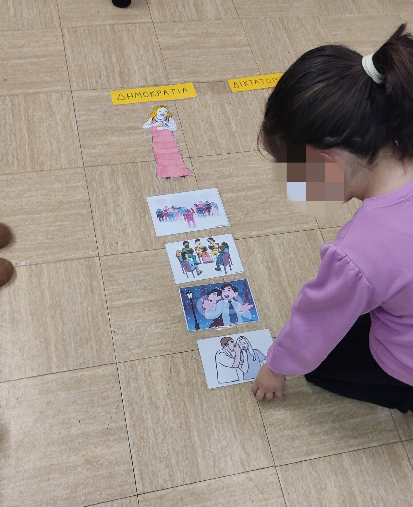 Προσεγγίσαμε έννοιες και αξίες όπως αυτές της Δημοκρατίας, της Ελευθερίας και της Ειρήνης, και γνωρίσαμε τις διαφορές δημοκρατίας-δικτατορίας μέσα από τα παραμύθια “Ντενεκεδούπολη” “Η κυρά Δημοκρατία”,”Στο δάσος “κ.α.