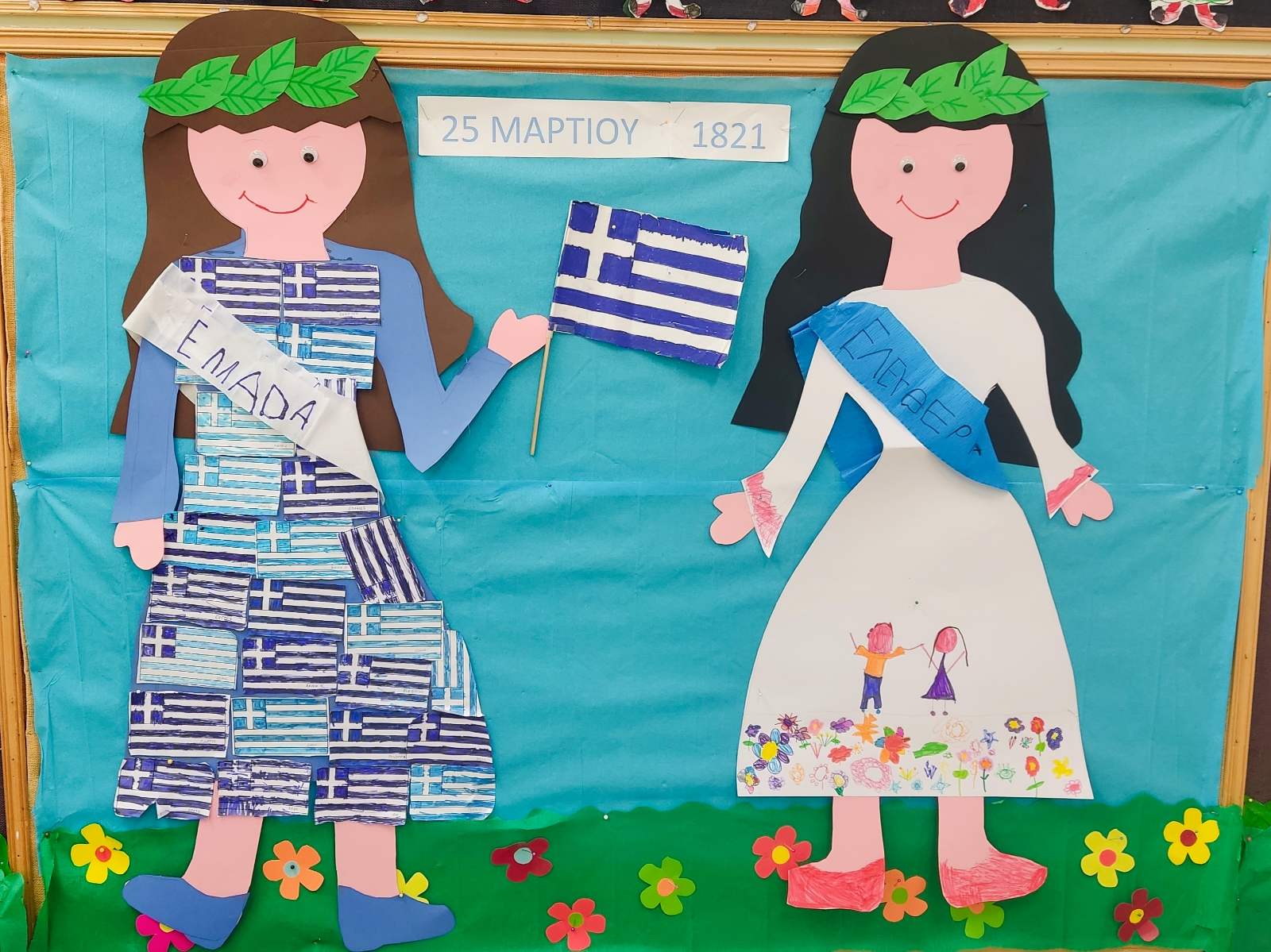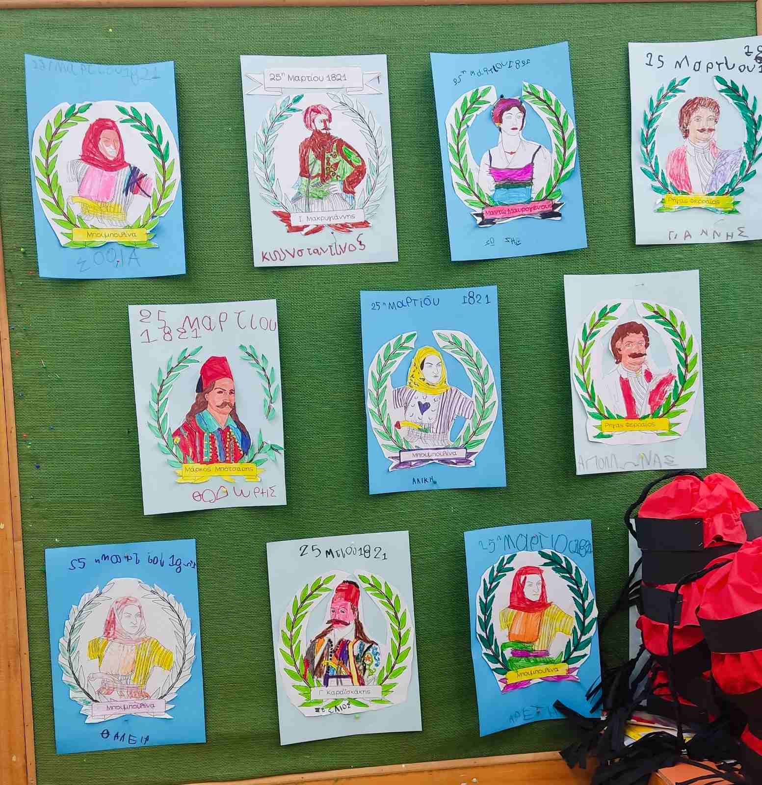 Τη πορεία και τους αγώνες των Ελλήνων ερευνήσαμε και διαβάσαμε μαζί με τα παιδιά τα οποία εμπνεύστηκαν και υλοποίησαν τις δικές τους δημιουργίες. Μάθαμε ποιήματα, χορούς, τραγούδια και προετοιμάσαμε τη σχολική μας γιορτή ως ελάχιστο φόρο τιμής στους ήρωες του 21 που μας δίδαξαν το θάρρος και την ελευθερία!!!